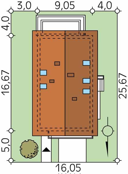 - Min. wymiary działki 16.05x25.67 m