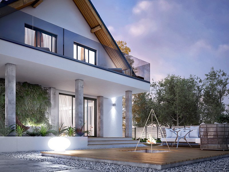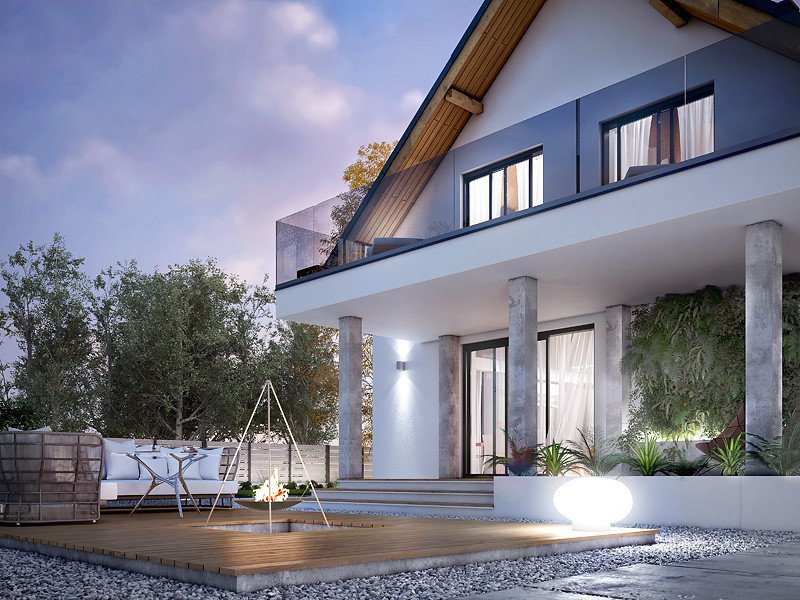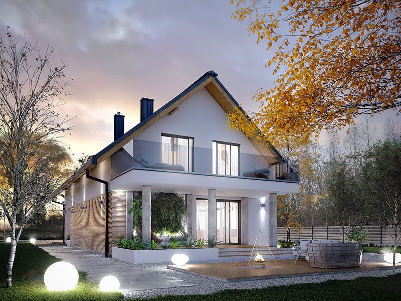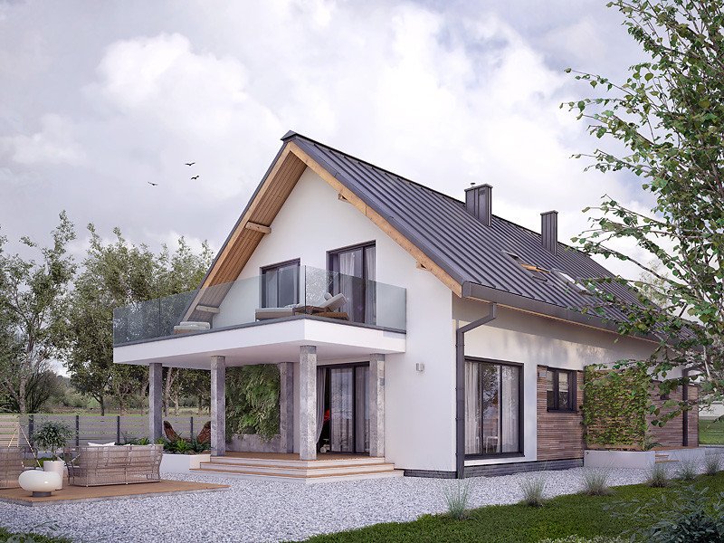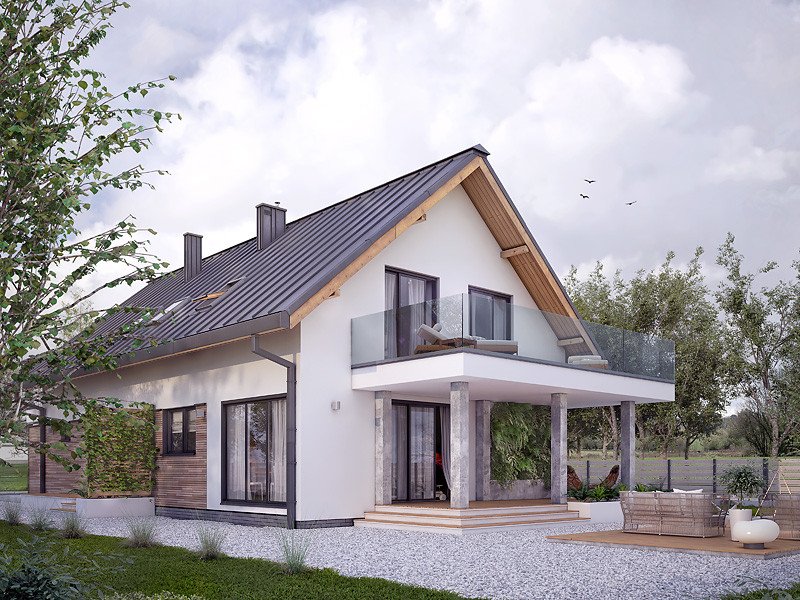 - Dach: blacha na rąbek stojący Classic (Ruukki), kąt nachylenia 40°.