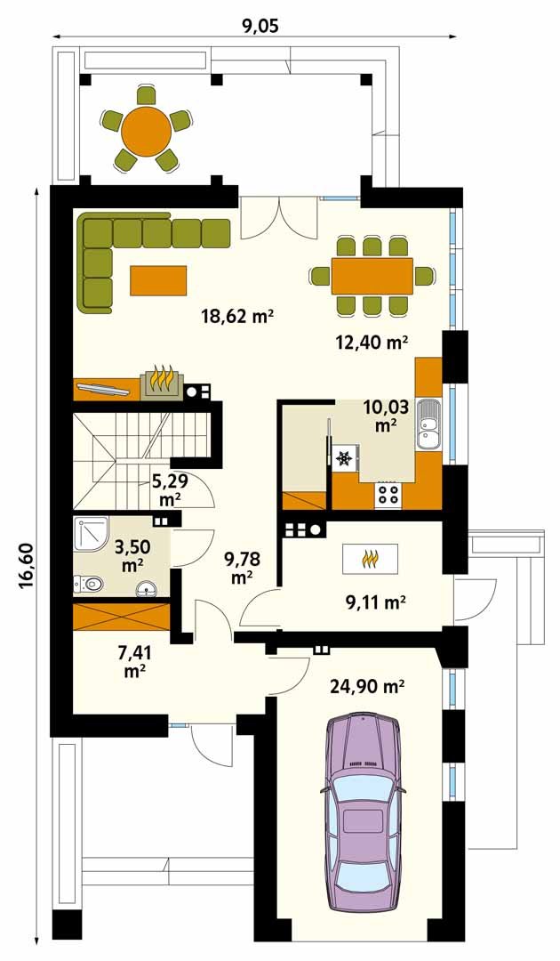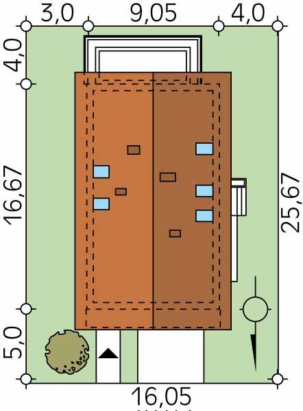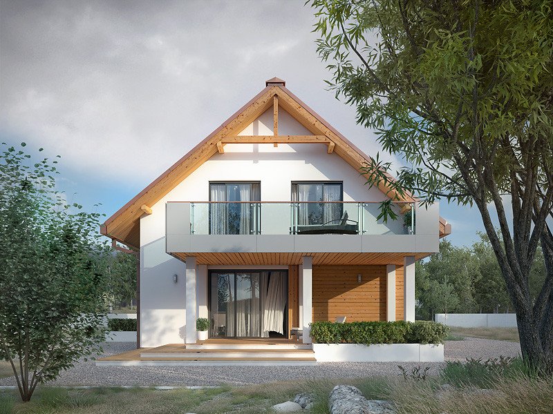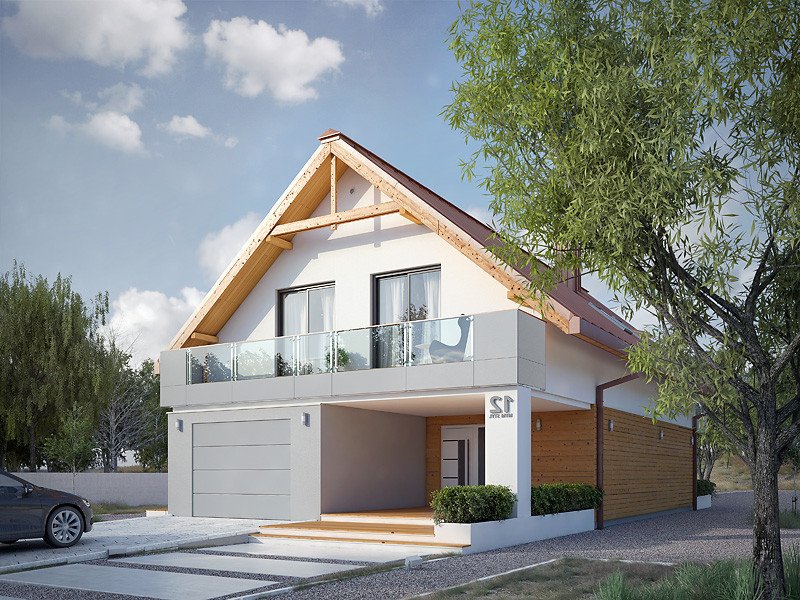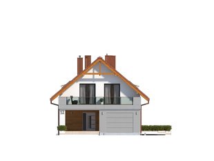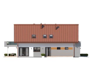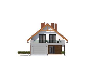 Amarylis 6 to kolejna odsłona projektów z rodziny domów na wąską działkę. W przestrzeni parteru zorganizowano przestronny salon, jadalnię oraz kuchnię ze spiżarnią. Program uzupełnia kotłownia na paliwo gazowe lub paliwo stałe oraz jednostanowiskowy garaż. Poddasze domu jest strefą nocną przewidzianą dla 5 osobowej rodziny. 3 pokoje dla dzieci oraz przestronna wspólna łazienka sąsiadują z sypialnią rodziców połączoną z garderobą oraz oddzielna łazienką. Projekt cechuje prosta, zamknięta w obrysie prostokąta bryła, do której dokomponowany został garaż oraz wolna przestrzeń tworząca podcień w strefie wejściowej domu. Bryłę obiektu przykrywa prosty dwuspadowy dach uzupełniony oknami dachowymi. Zastosowanie drewna, białego tynku oraz płyt włókno-cementowych nadaje budynkowi oszczędny ale nowoczesny charakter.