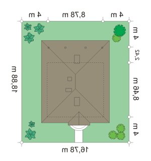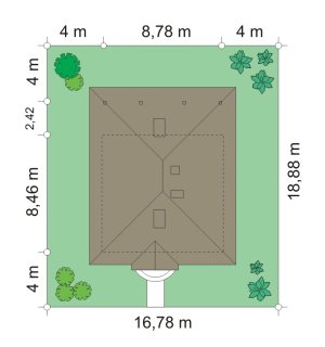 - Min. wymiary działki 16.78x16.78 m