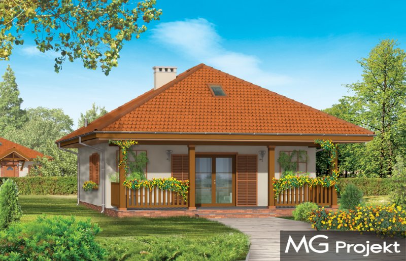 Ambrozja to domek dla 3-4 osobowej rodziny, mogący służyć zarówno jako domek całoroczny jak i letniskowy. Wnętrze domu ukształtowano z podziałem na część ogólną, dzienną - z salonem oraz część prywatną, nocną z dwoma sypialniami i łazienką na parterze oraz dwa pomieszczenia na poddaszu mogące pełnić funkcję sypialni. Pracownia posiada wersję projektu Ambrozja z kotłownią w pomieszczeniu gospodarczym, wariant z garażem z boku domu, wersję w technologii szkieletu drewnianego oraz odbicie lustrzanego projektu.