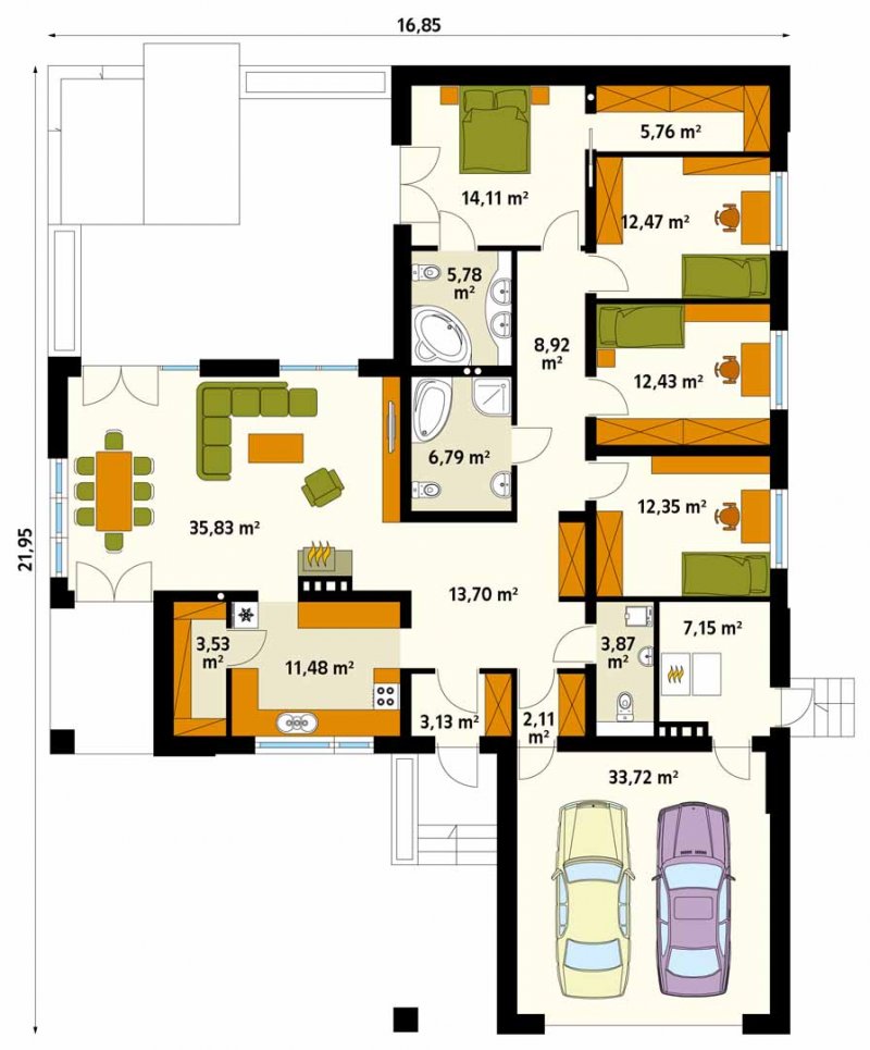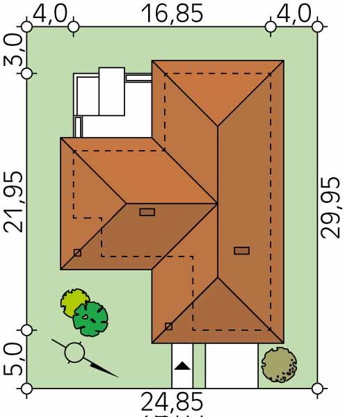 - Min. wymiary działki 24.85x29.95 m