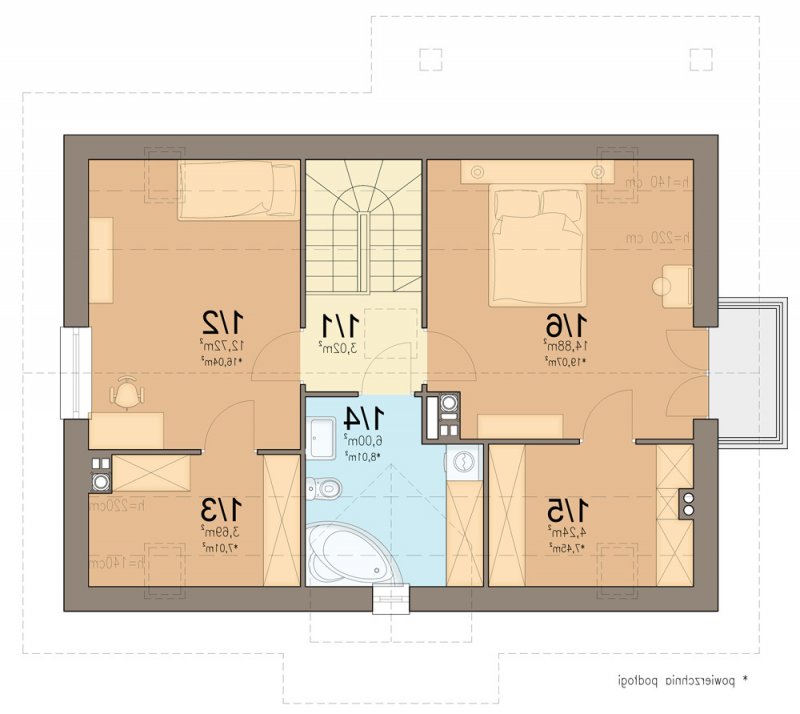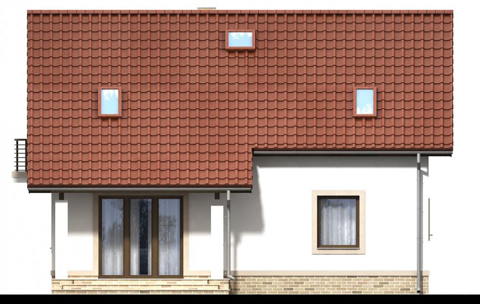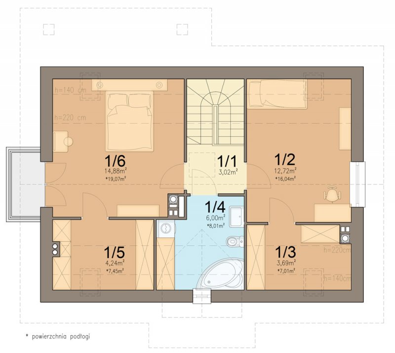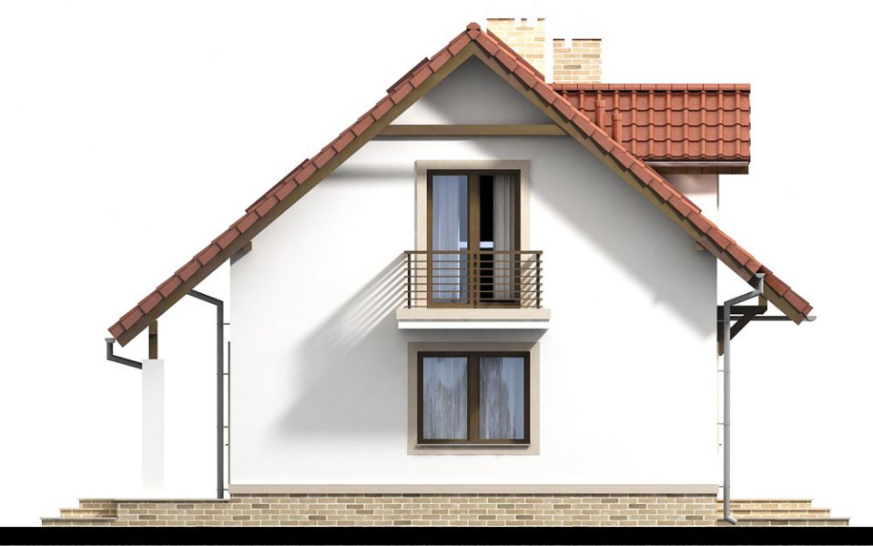 Aby umożliwić w pełni wykorzystanie powierzchni pod skosami dachu, zaprojektowano wysoką ścianę kolankową.