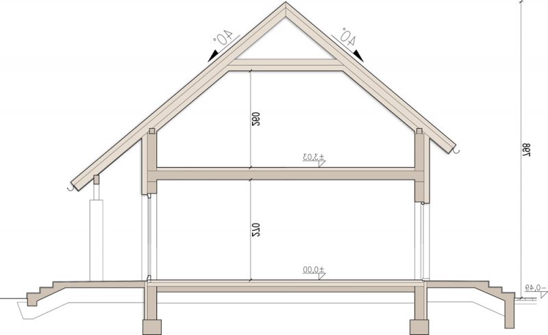 - Kąt nachylenia dachu 40.00°