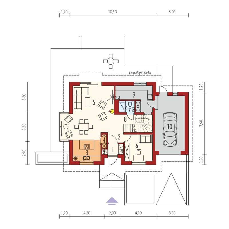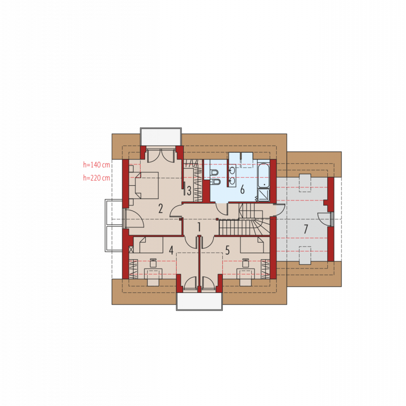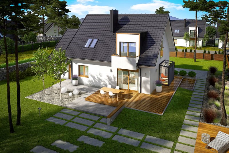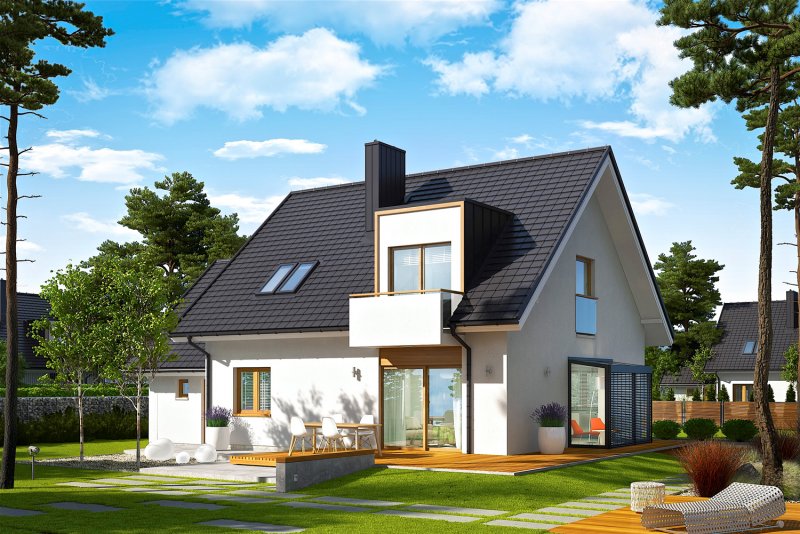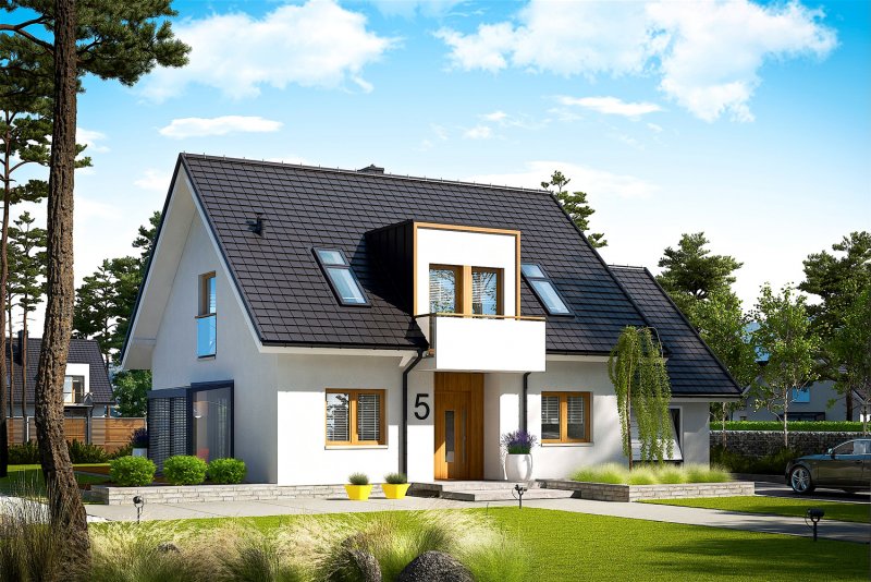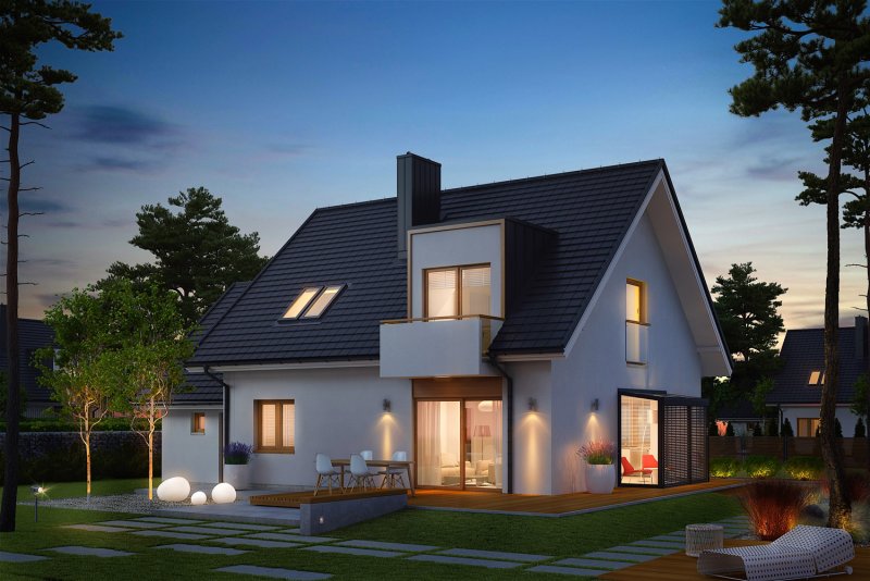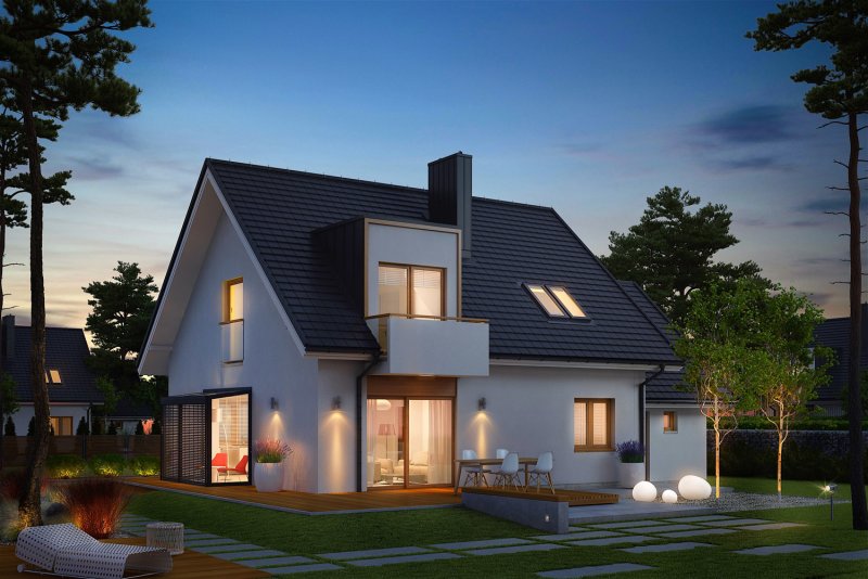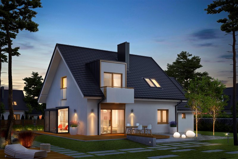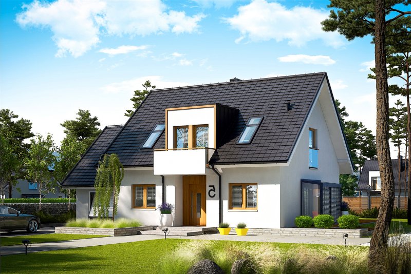 April G1 to nowoczesny i stylowy dom, który wspaniale wypełnia się naturalnym światłem. Prosta forma wzbogacona modnymi lukarnami znakomicie odnajdzie się w każdym krajobrazie, a pomysłowo zorganizowane wnętrze przypadnie do gustu nawet najbardziej wymagającym inwestorom. Dużym plusem projektu jest atrakcyjny, przeszklony wykusz, w którym zaplanowano pogodną jadalnię, ale z powodzeniem można w nim urządzić również przyjemny kącik do czytania z relaksującym widokiem na ogród.