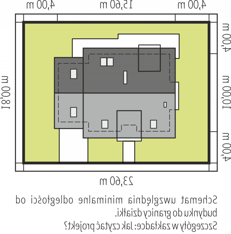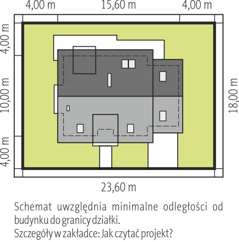 - Min. wymiary działki 23.60x18.00 m