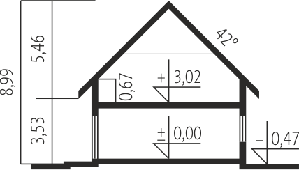 - Kąt nachylenia dachu 42.00°