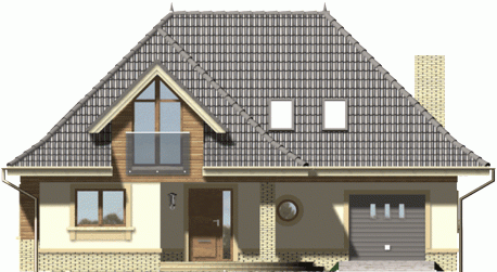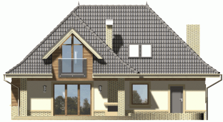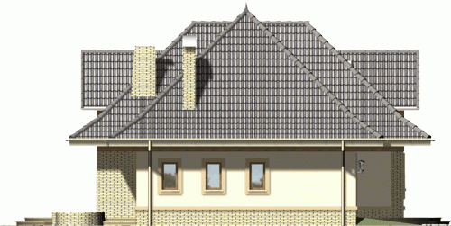 Ściany budynku zaprojektowano z betonu komórkowego ocieplonego styropianem lub w innej technologii w ramach adaptacji. Strop gęstożebrowy, więźba drewniana, pokrycie dachówką ceramiczną lub cementową. Inne pokrycia w ramach adaptacji. Elewacje tynkowane, elementy fasad okładane w zależności od projektu płytką klinkierową, deskami lub tynkowane.