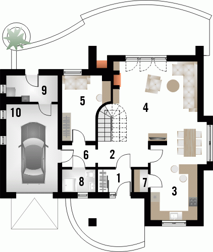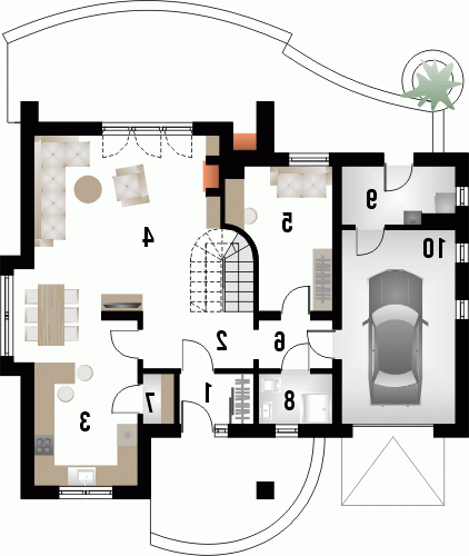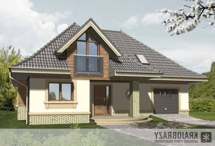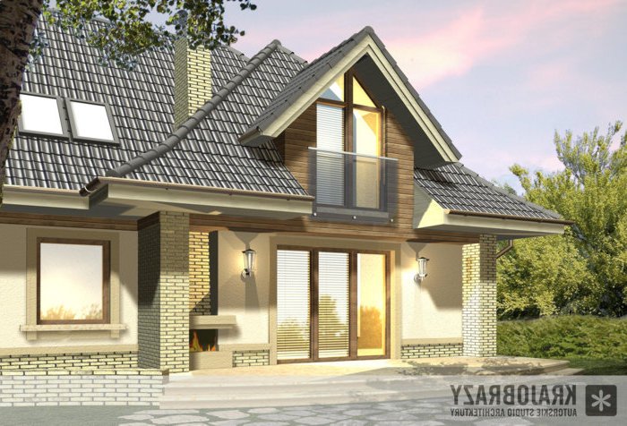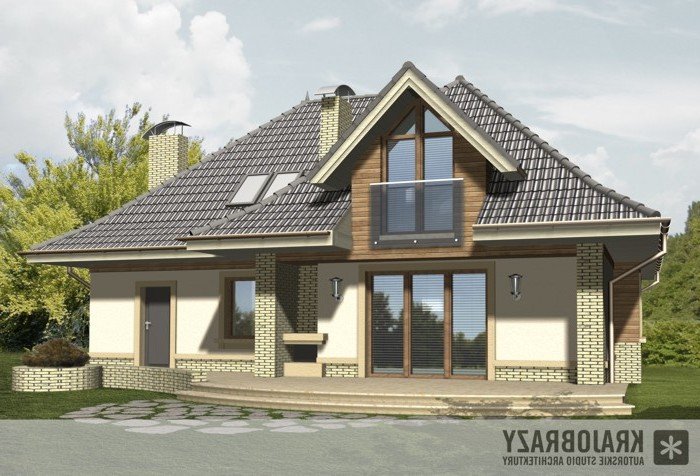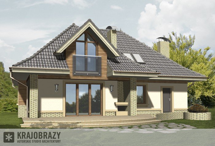 Dom jednorodzinny z grupy projektów nowoczesnych autorstwa pracowni KRAJOBRAZY. Atrakcyjny schemat funkcjonalny budynku został zamknięty w bryle o nowoczesnych detalach. Odpowiednio dobrane materiały wykończeniowe oraz kolorystyka zewnętrzna sprawiają, że dom wygląda współcześnie i będzie dobrze się prezentował w prawie każdym otoczeniu.