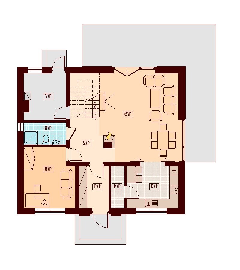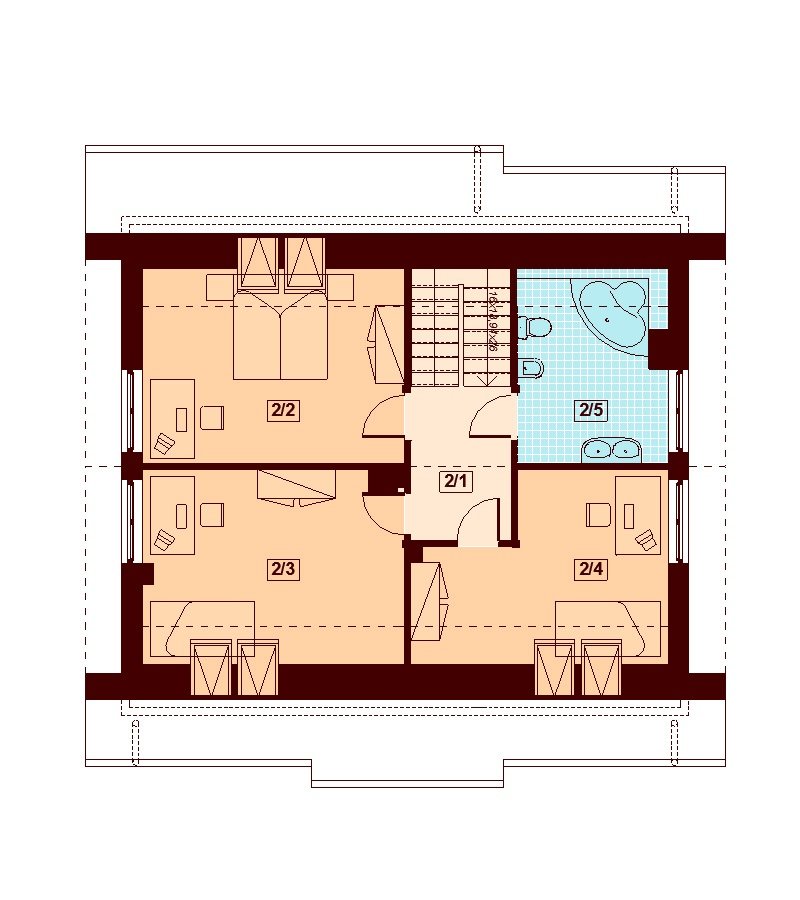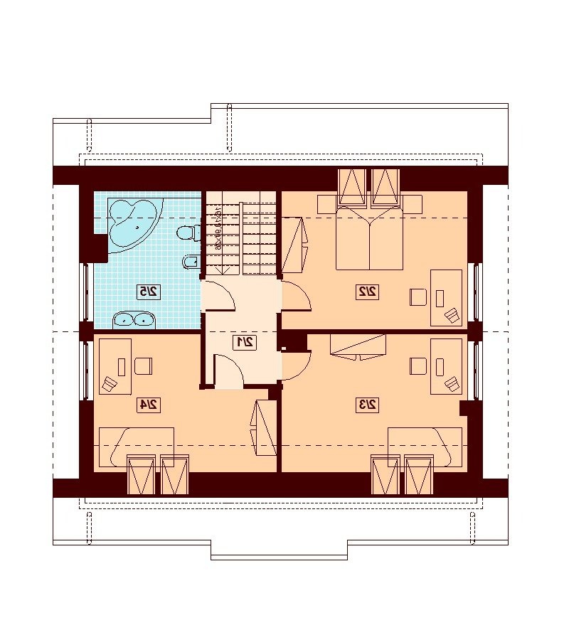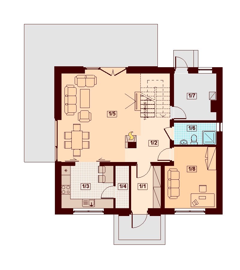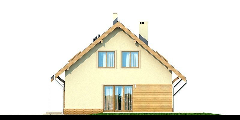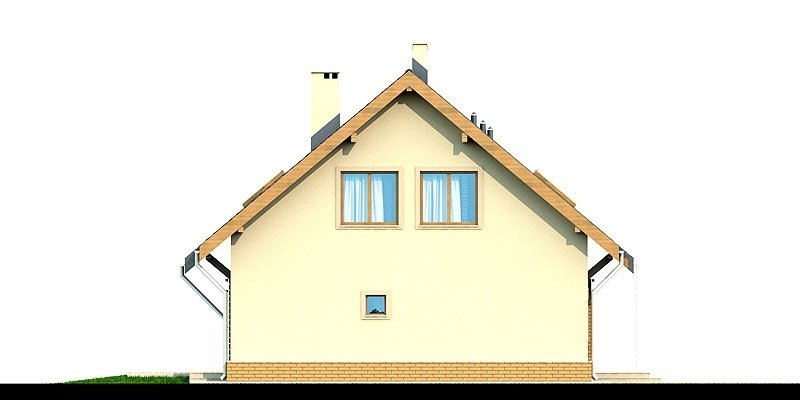 Armanda BIS to atrakcyjny, funkcjonalny dom o prostej i taniej, dokładnie przemyślanej konstrukcji, przeznaczony dla 3-6 osobowej rodziny, o eleganckiej formie i tradycyjnej estetyce. Jest to budynek parterowy z użytkowym poddaszem, niepodpiwniczony. Na parterze zlokalizowana jest obszerna strefa dzienna składająca się z kuchni (która w zależności od potrzeb może być zamykana lub otwarta) jadalni oraz salonu otwartego na taras i ogród. Uzupełnieniem kuchni jest pojemna spiżarnia. Schody w holu w zależności od potrzeb mogą być otwarte na salon powiększając w ten sposób przestrzeń dzienną i stanowiąc ciekawy element architektoniczny, mogą też być odizolowane ścianką działową od salonu. Dzięki doświetleniu strefy dziennej zarówno od strony ogrodu jak i z boku dom nadaje się na każdą działkę, zarówno z wjazdem od północy jak i od południa, wschodu bądź zachodu. Dodatkowo na parterze zaprojektowano pokój który może służyć jako pokój gościnny bądź gabinet, łazienkę oraz pomieszczenie gospodarcze. W wiatrołapie przewidziano miejsce na dużą szafę wnękową. Na poddaszu znalazły się trzy pokoje oraz wygodna łazienka. Architektura domu to połączenie tradycji z nowoczesnością oraz elegancji z dbałością o proporcje, estetykę i funkcjonalność. Dom zaprojektowano jako energooszczędny. Dostępna również wersja projektu z lukarną od strony elewacji frontowej (projekt Armanda) oraz wersja z wykuszem w jadalni (projekt Belinda)
