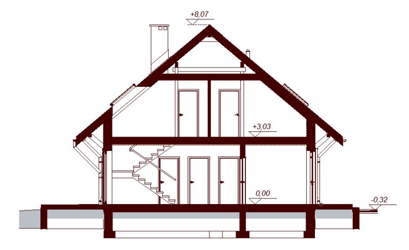 Ściany zewnętrzne i wewnętrzne nośne z betonu komórkowego (24cm), docieplone (15cm). Ścianki wewnętrze działowe na parterze z bloczków, na poddaszu z płyt GK bądź z bloczków. Ściany fundamentowe z bloczków betonowych. Strop gęstożebrowy Teriva. Wszystkie technologie można zmienić na etapie adaptacji.