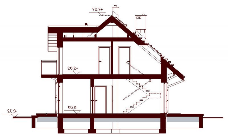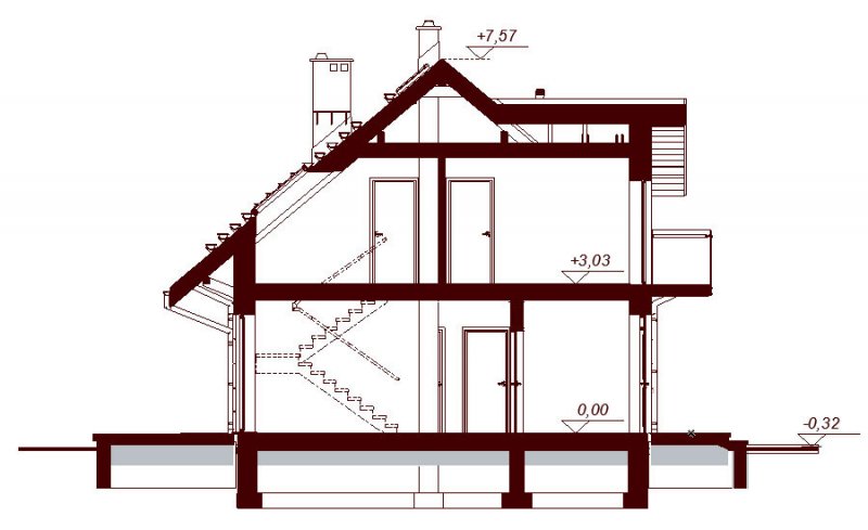 Ścianki wewnętrze działowe: na parterze z bloczków, na poddaszu z płyt GK bądź z bloczków.