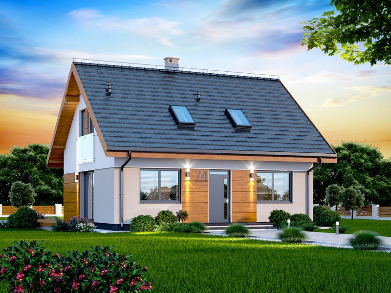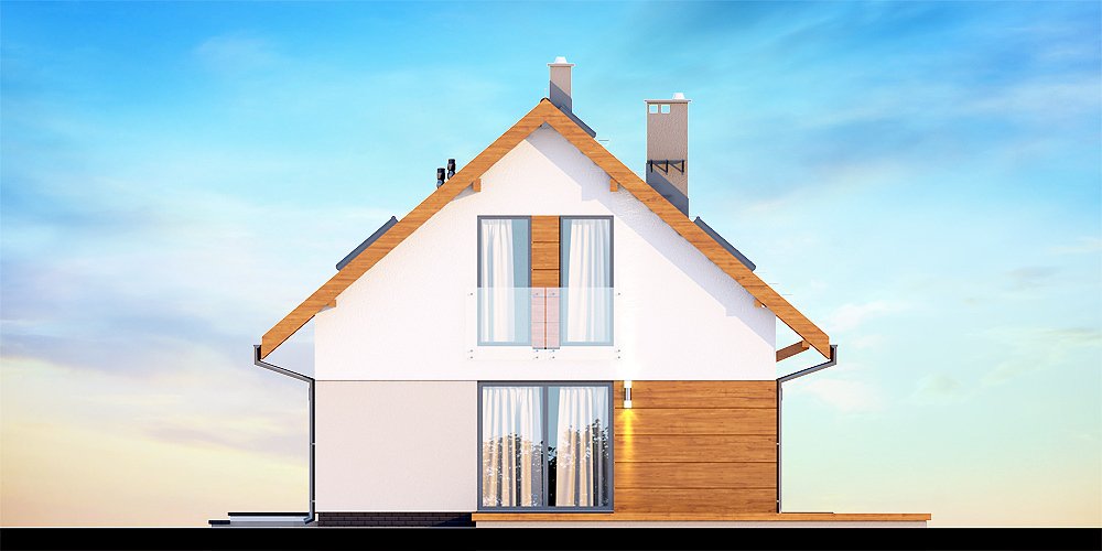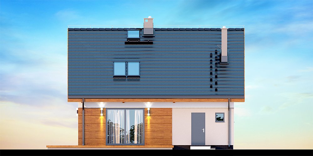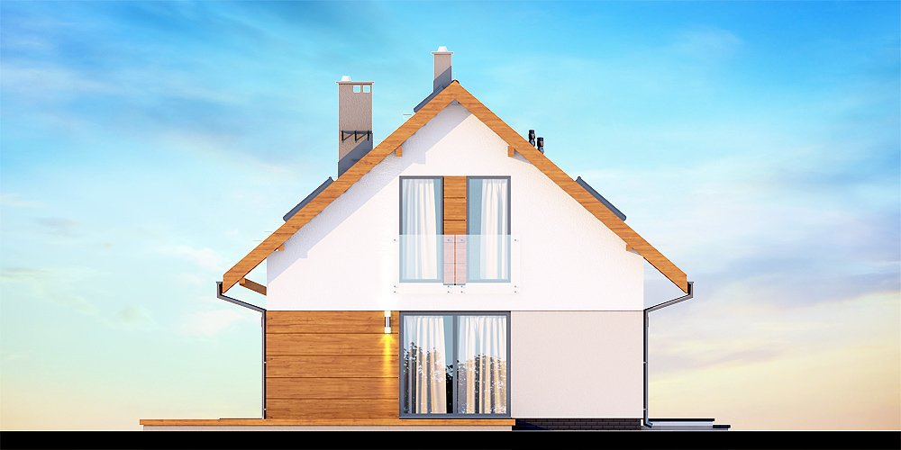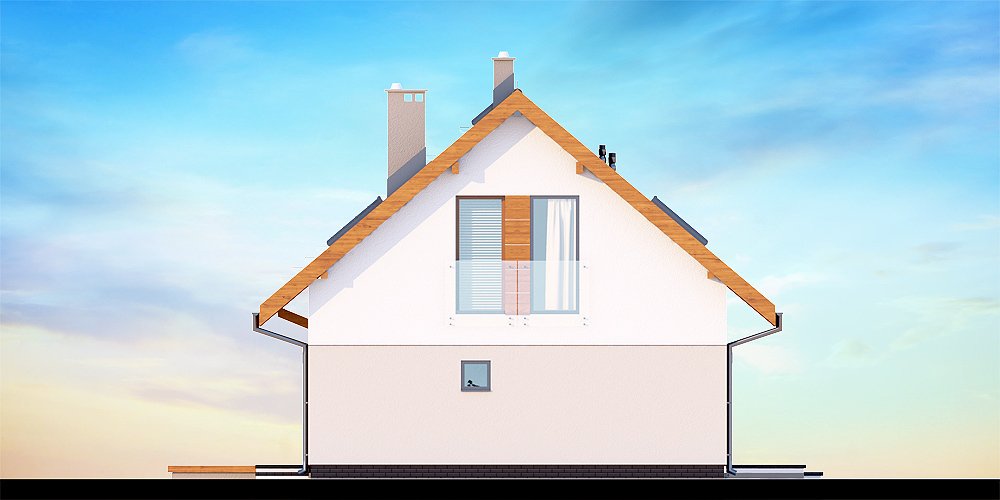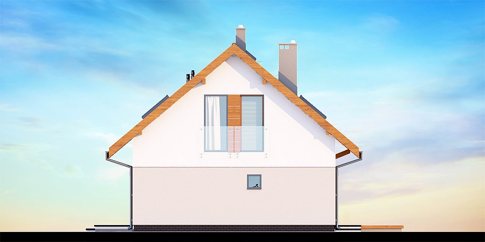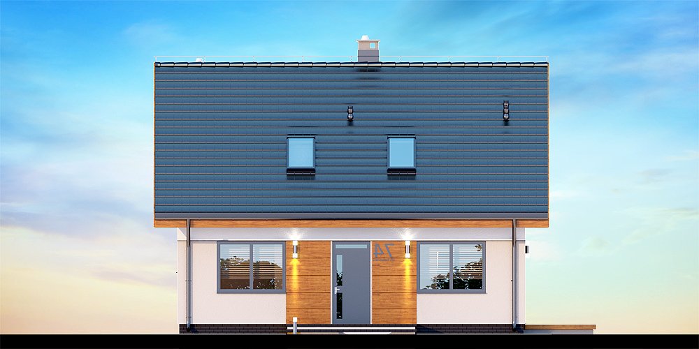 Armanda XS BIS to funkcjonalny, niewielki, piękny dom o prostej i taniej, dokładnie przemyślanej konstrukcji, przeznaczony dla 3-6 osobowej rodziny, o eleganckiej formie i współczesnej, subtelnej estetyce. Jest to budynek parterowy z użytkowym poddaszem, niepodpiwniczony. Na parterze zlokalizowana jest obszerna strefa dzienna składająca się z kuchni (która w zależności od potrzeb może być zamykana lub otwarta) jadalni oraz salonu otwartego na taras i ogród. Uzupełnieniem kuchni jest pojemna spiżarnia. Schody w holu w zależności od potrzeb mogą być otwarte na salon powiększając w ten sposób przestrzeń dzienną i stanowiąc ciekawy element architektoniczny, mogą też być odizolowane ścianką działową od salonu. Dzięki doświetleniu strefy dziennej zarówno od strony ogrodu jak i z boku dom nadaje się na każdą działkę, zarówno z wjazdem od północy jak i od południa, wschodu bądź zachodu. Dodatkowo na parterze zaprojektowano pokój który może służyć jako pokój gościnny bądź gabinet, łazienkę oraz pomieszczenie gospodarcze. W wiatrołapie przewidziano miejsce na dużą szafę wnękową. Na poddaszu zaprojektowano trzy pokoje oraz wygodną łazienkę. W projektowaniu domu szczególną uwagę zwrócono na atrakcyjny wygląd zewnętrzny, proporcjonalność bryły budynku, odpowiednie doświetlenie i funkcjonalne rozplanowanie pomieszczeń przy zachowaniu prostoty konstrukcji oraz zwartości bryły domu. Architektura domu to połączenie tradycji z nowoczesnością oraz elegancji z dbałością o proporcje, estetykę i funkcjonalność. Dom zaprojektowano jako energooszczędny. Dostępna również wersja projektu z lukarną od strony elewacji frontowej (projekt Armanda XS) oraz większe wersje domu, projekty: Armanda Mała BIS, Armanda Mała, Armanda, Armanda BIS, Belinda.