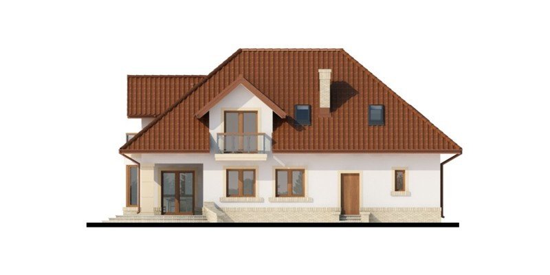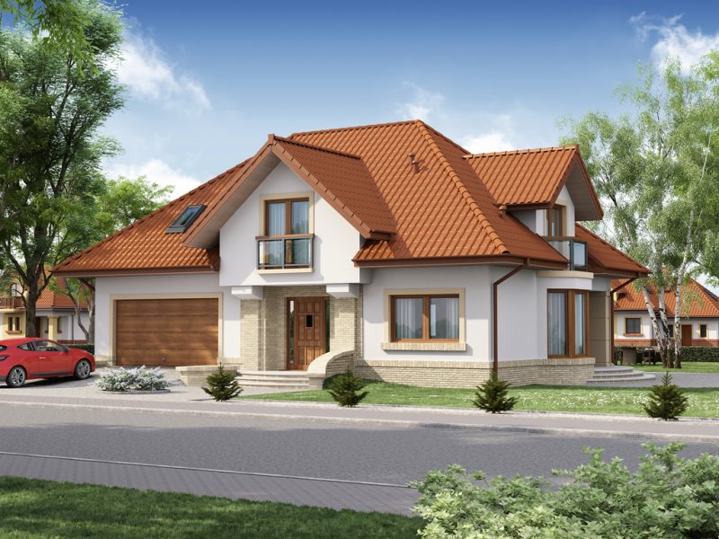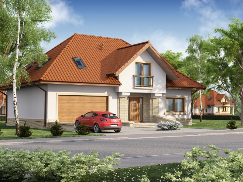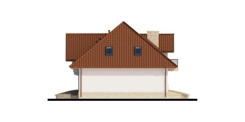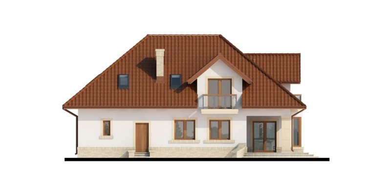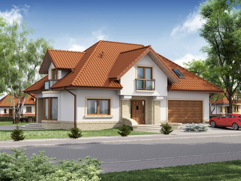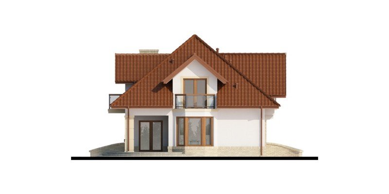Tradycyjny dom z poddaszem użytkowym, który już na pierwszy rzut oka przyciąga swoją elegancją, a równocześnie daje wrażenie przytulności. Doskonale będzie się w nim czuła 4-osobowa rodzina.