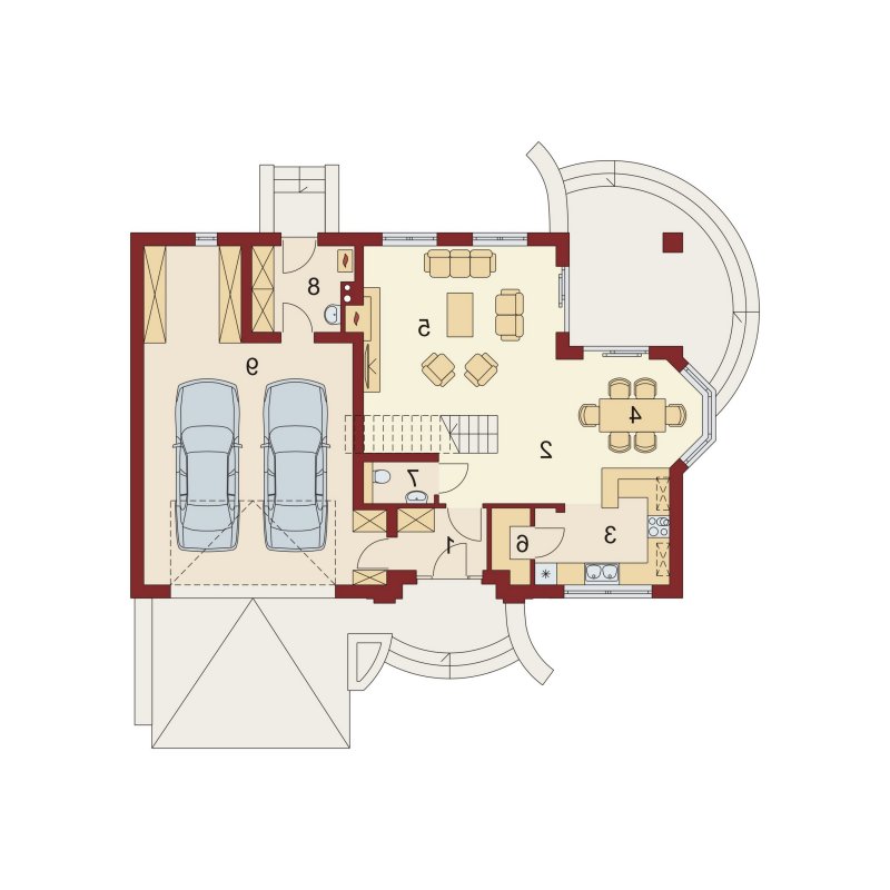 Wiatrołap scala część dzienną domu z częścią gospodarczą. Dodatkowe pomieszczenie gospodarcze dostępne z garażu, to równocześnie bezpośrednie wyjście do ogrodu.