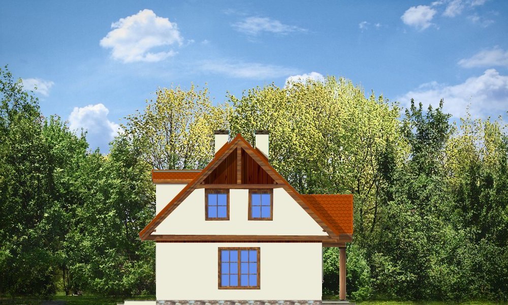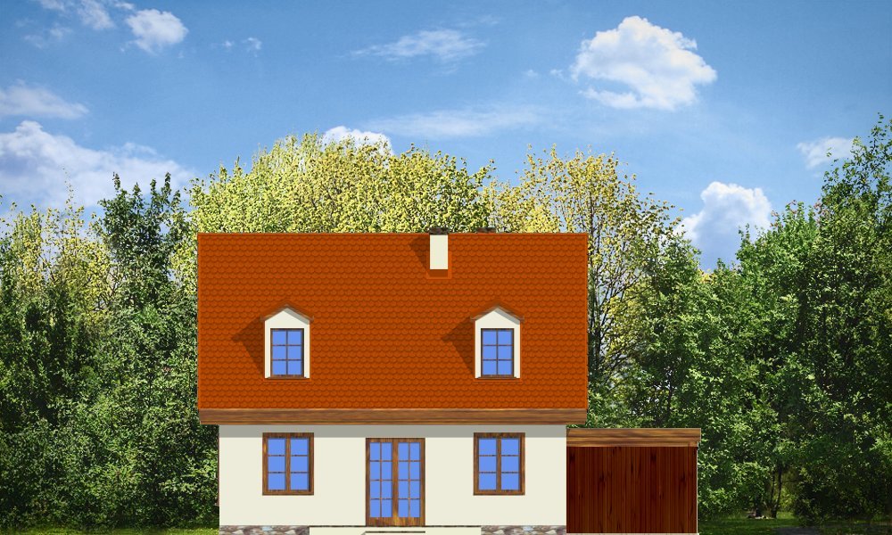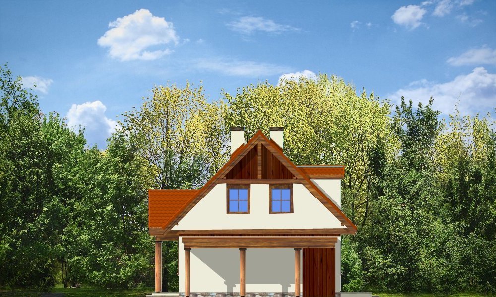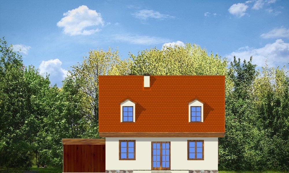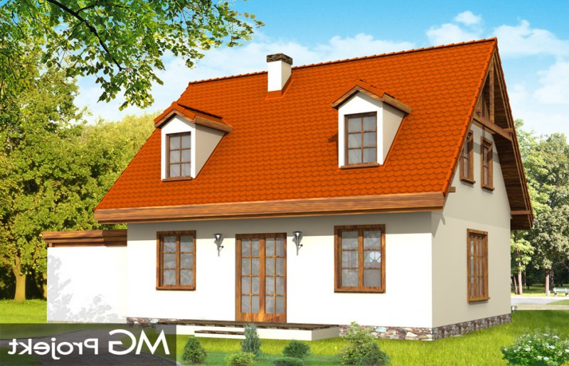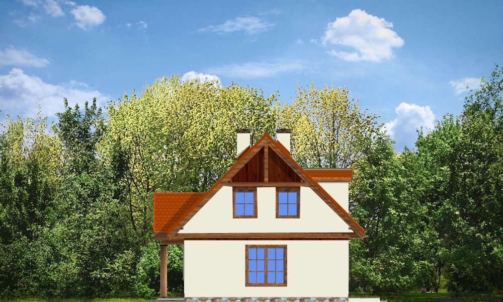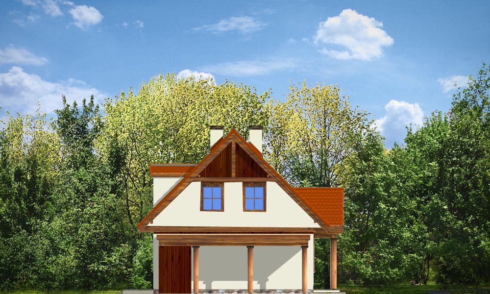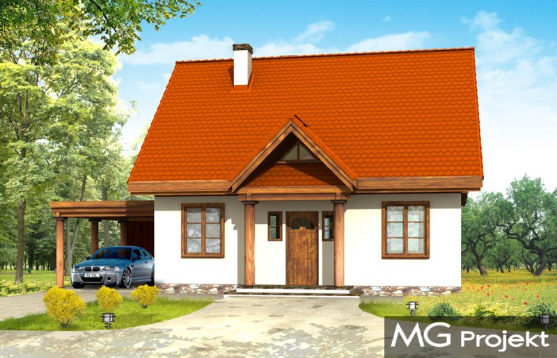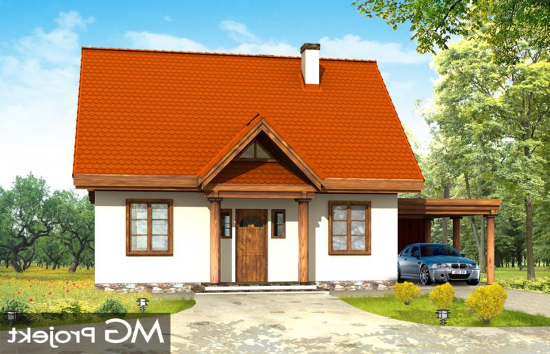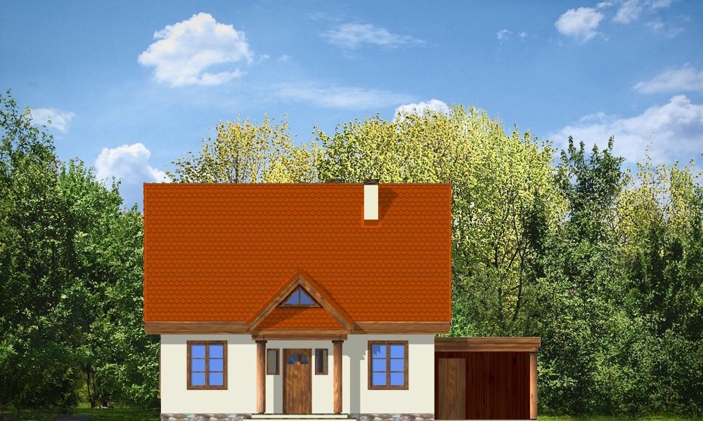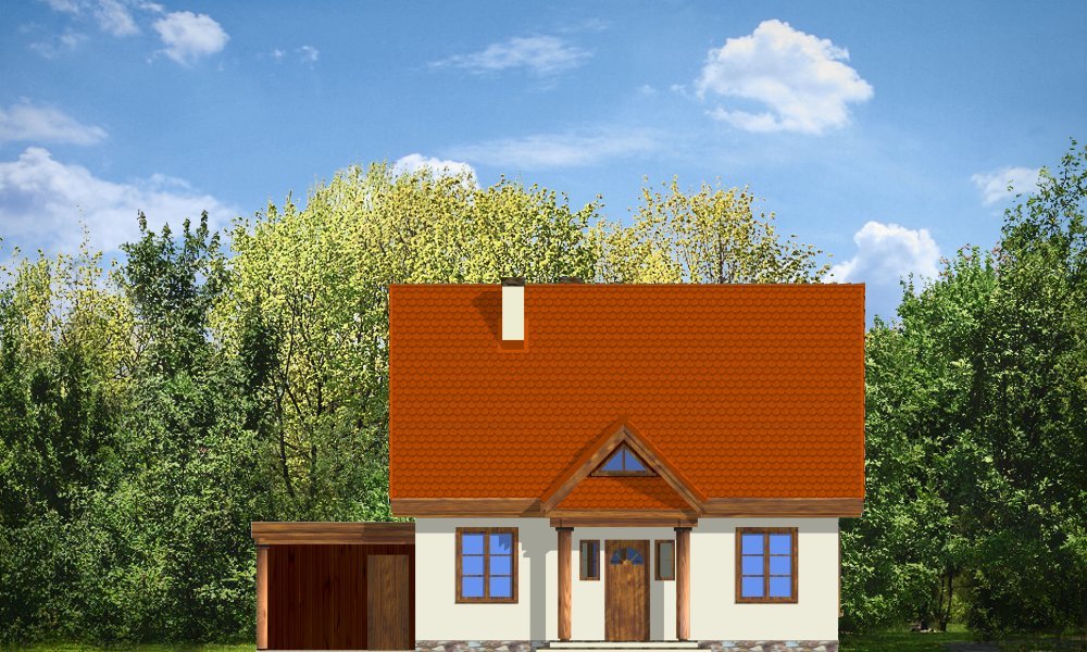 Bajkowy to propozycja dla 4-5 osobowej rodziny. Domek jest nieduży, ale spełnia wszystkie funkcje, którymi powinien charakteryzować się prawdziwy dom. Na parterze domu zaprojektowany został dodatkowy pokój, mogący spełniać funkcję gabinetu, sypialni babci lub pokoju gościnnego. Wiata opcjonalnie może być garażem. Pracownia posiada także wersję projektu z podwójnym garażem.