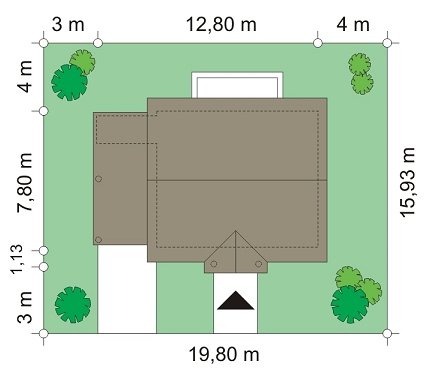 - Min. wymiary działki 19.80x15.93 m