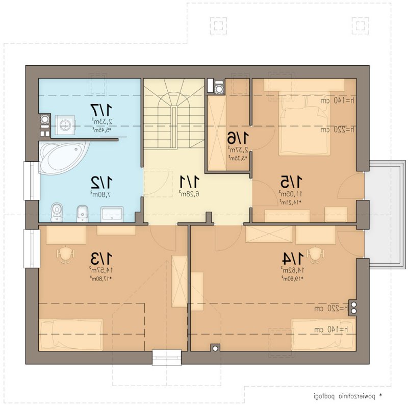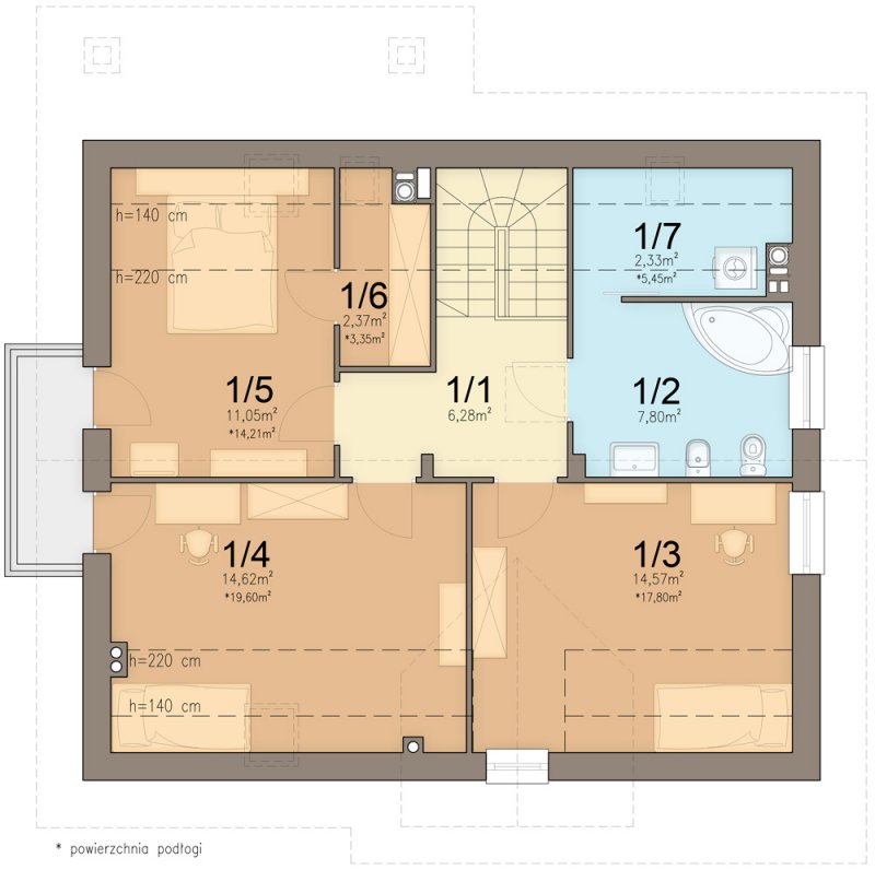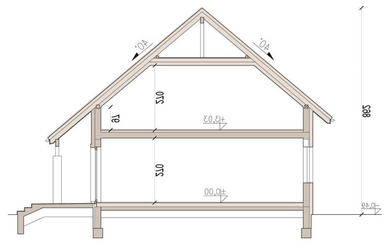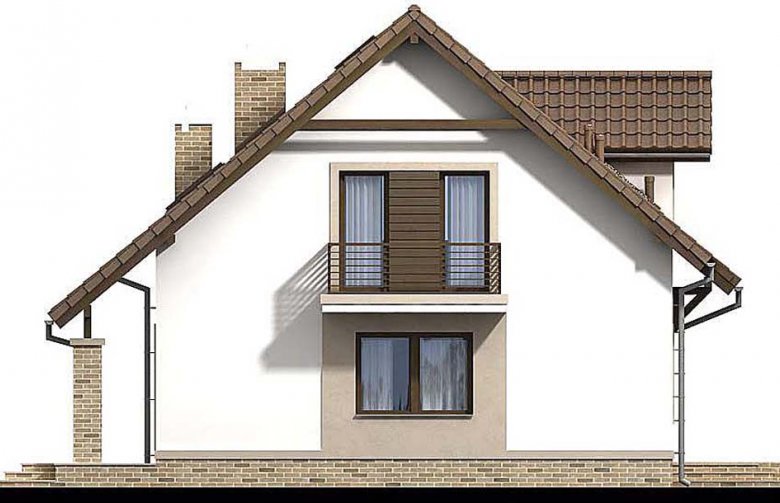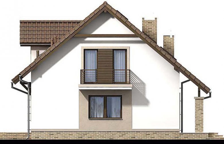 Aby umożliwić w pełni wykorzystanie powierzchni pod skosami dachu, zaprojektowano wysoką ścianę