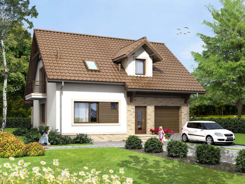 Dom ma atrakcyjny wygląd, ale dzięki prostej formie jest tani w budowie. Pokoje mają wielkość