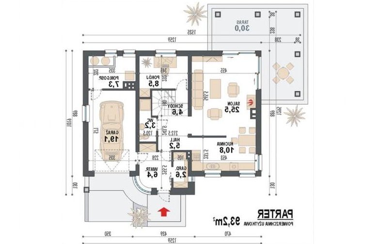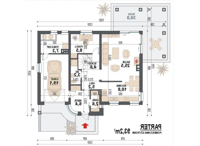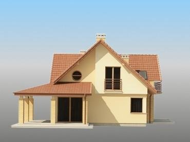 Cechami charakterystycznymi tego domu są: zwarta bryła budynku, efektowny zadaszony taras oraz antresola nad jadalnią