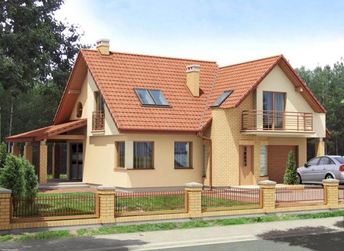 Jednorodzinny dom parterowy z poddaszem użytkowym i garażem jednostanowiskowym, niepodpiwniczony, przeznaczony dla 4-5 osób