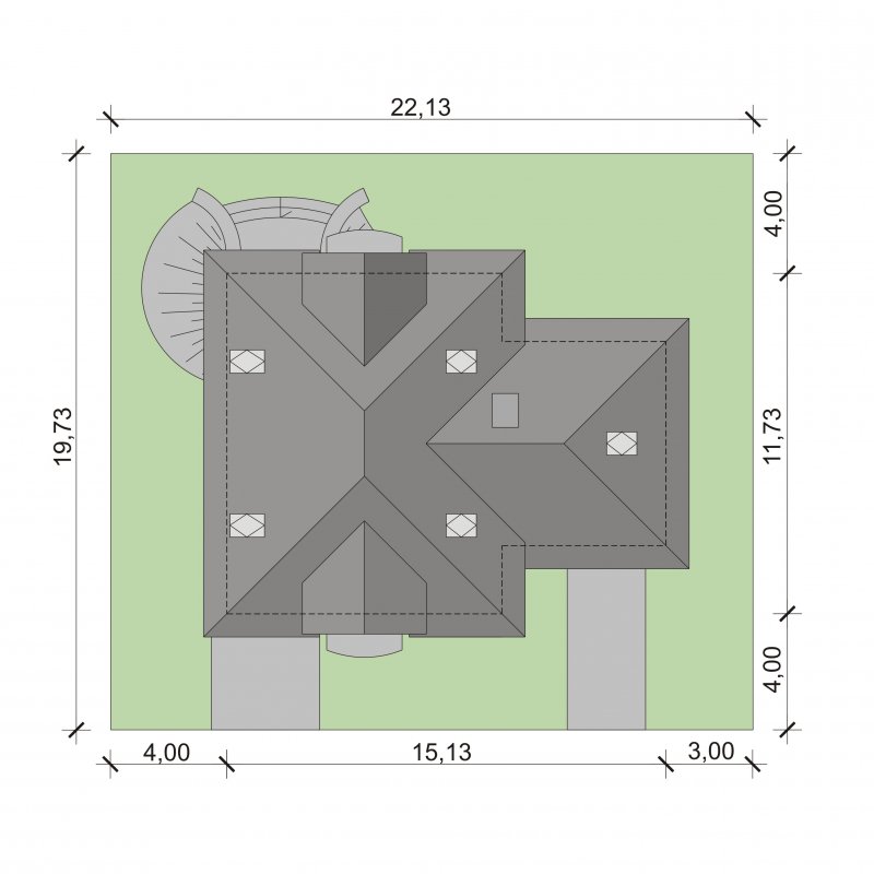 - Min. wymiary działki 22.25x20.00 m