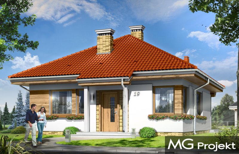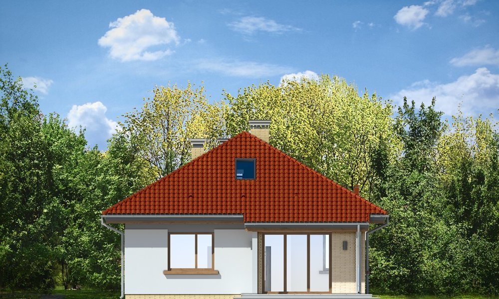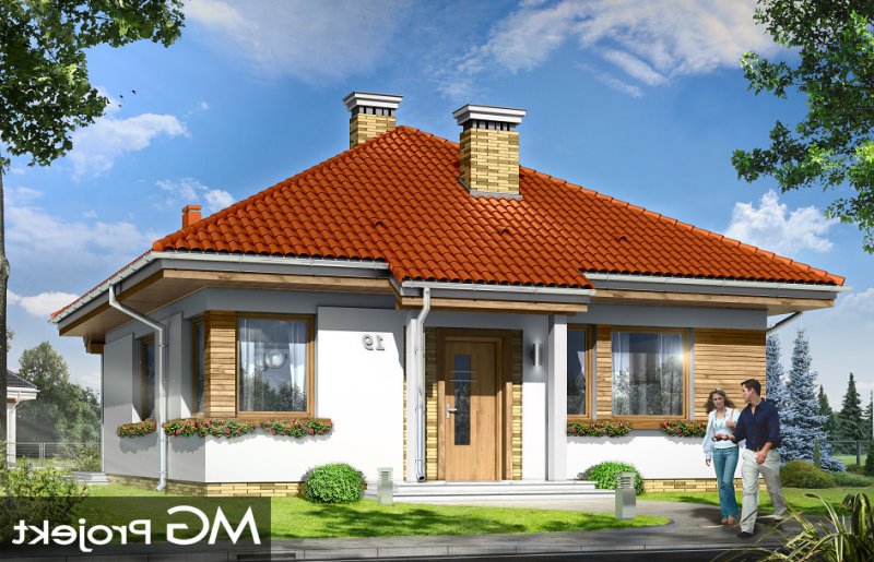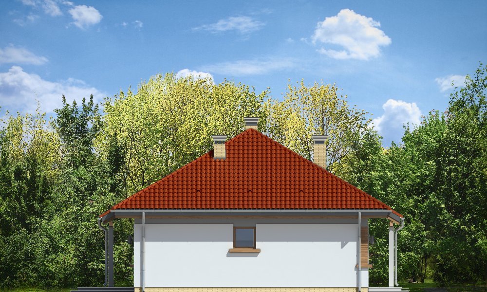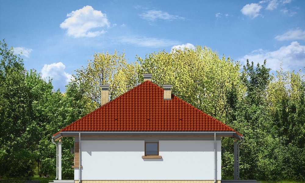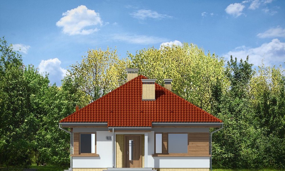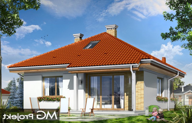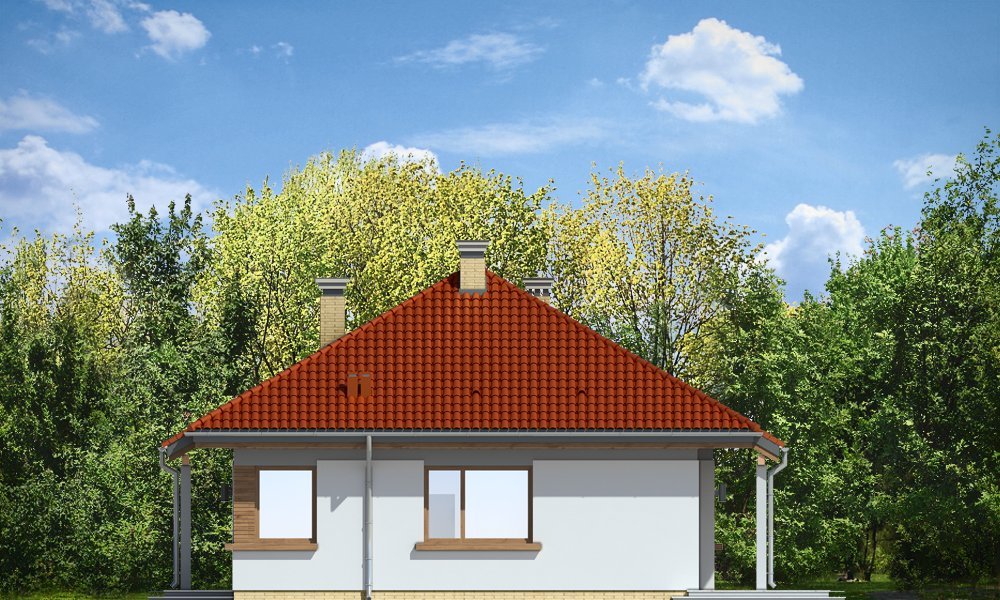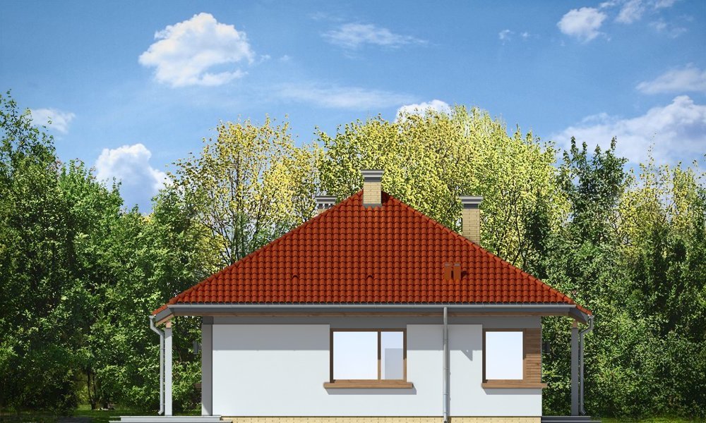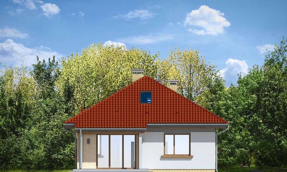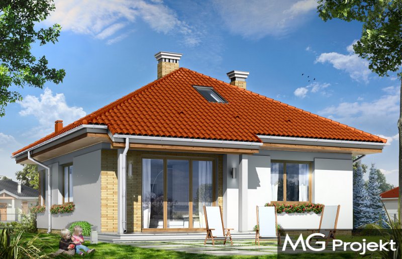 Bambi to nieduży, parterowy domek jednorodzinny, przewidziany dla 3-4osobowej rodziny. Budynek przekryty został czterospadowym, kopertowym dachem. Bardzo prosta bryła domu, oparta na planie kwadratu, oraz kopertowym dachu, połączona z dobrze dobranymi proporcjami i ciekawymi detalami architektonicznymi, tworzą spójną, atrakcyjną całość. Domek jest łatwy w budowie, a dzięki zwartej bryle - niedrogi w ogrzewaniu. W projekcie przestrzeń parteru podzielono na otwartą część dzienną, z kuchnią, salonem i holem, oraz część nocną - z dwiema sypialniami i łazienką. Z salonu szerokimi drzwiami balkonowymi wychodzimy na taras i ogród. Taras budynku jest częściowo zadaszony. W centralnym miejscu domu umiejscowiono kominek, którym alternatywnie można ogrzać całe wnętrze. Z holu wyciąganymi schodkami możemy dostać się na spory stryszek nad parterem, który wariantowo można zaadaptować na pokoik na poddaszu. Domek może pełnić funkcję budynku jednorodzinnego, ale również domu letniskowego.Pracownia posiada wersję odbicia lustrzanego projektu.