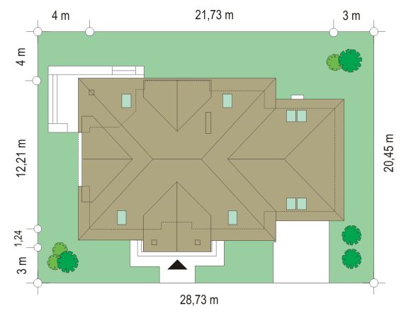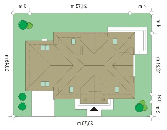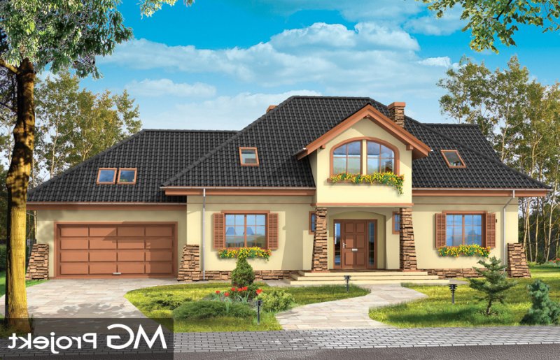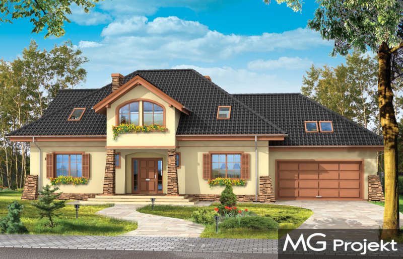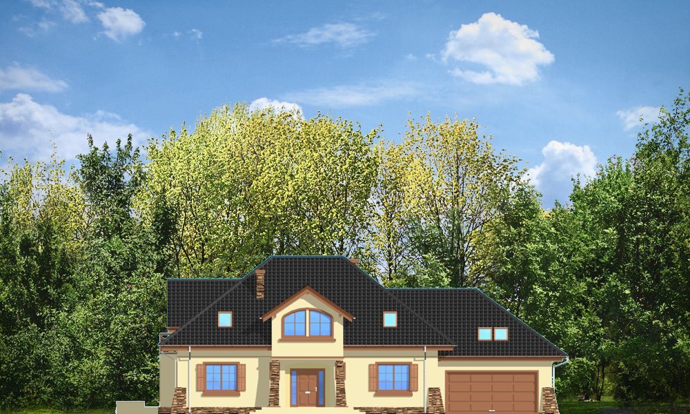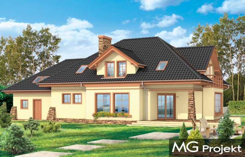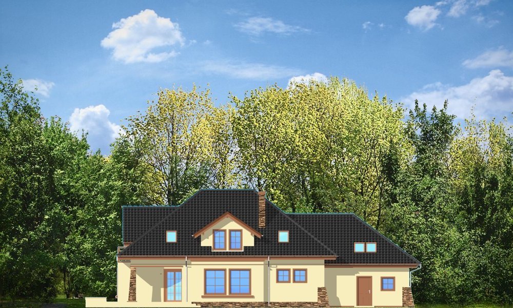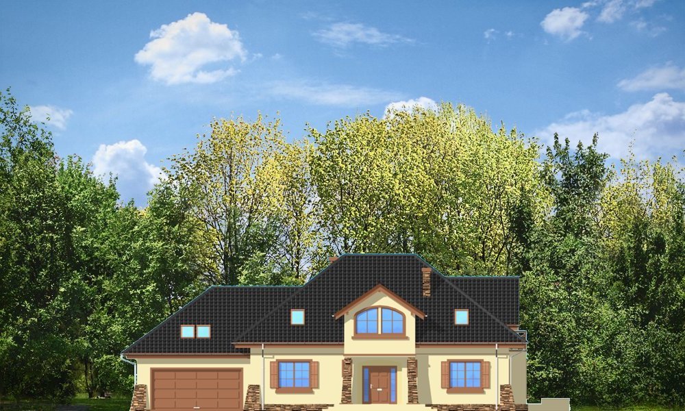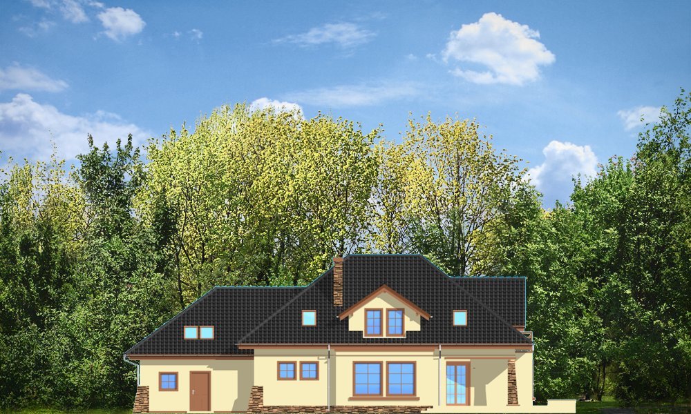 Benedykt 4 to wersja wariantowa domu Benedykt. W projekcie powiększono część garażową a elewacje urozmaicono trzema dodatkowymi lukarnami w głównej bryle budynku - po jednej na każdej elewacji domu. Dzięki temu żadna sypialnia na poddaszu nie ma skośnych ścian. Projekt posiada dwie wersje zagospodarowania poddasza. Dostępna jest także wersja projektu w odbiciu lustrzanym.