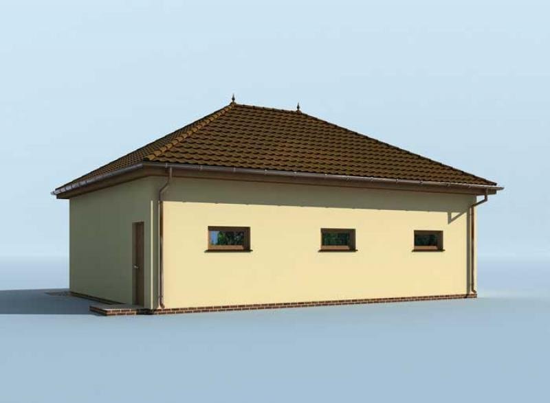 Budynek gospodarczy, wolnostojący. Projekt składa się z części architektonicznej, konstrukcyjnej i wewnętrznej instalacji elektrycznej. W projekcie załączone są podstawowe zestawienie stali, drewna i stolarki okienno-drzwiowej. Do projektu dołączamy bezpłatną zgodę na wprowadzenie zmian, oświadczenie projektantów o wykonaniu projektu zgodnie z obowiązującymi normami i przepisami oraz kserokopie uprawnień projektantów wraz z aktualnym wpisem do izby. W przypadku zamówienia projektu w technologii lekkiej, drewnianej konstrukcji szkieletowej, powierzchnia użytkowa budynku jest o około 7% większa.