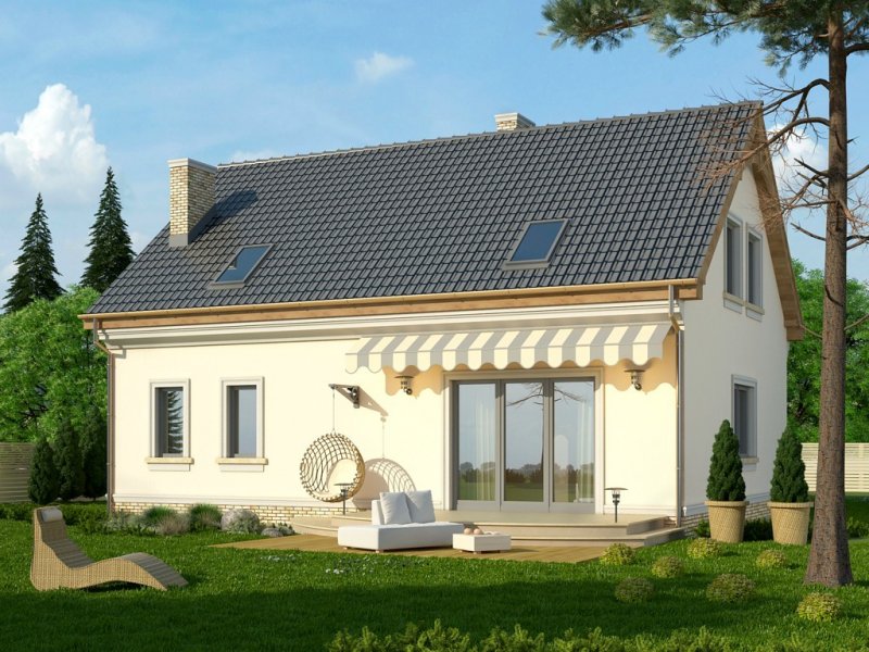 Ściany budynkuzaprojektowano z betonu komórkowego z dociepleniem lub w innejtechnologii w ramach adaptacji. Strop gęstożebrowy, więźbadrewniana, pokrycie dachówką ceramiczną lub cementową. Innepokrycia w ramach adaptacji. Elewacje tynkowane, częściowo pokrytepłytkami klinkierowymi, kominy również obłożone płytkamiklinkierowymi.
