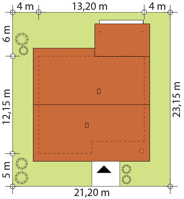 - Min. wymiary działki 21.20x23.15 m