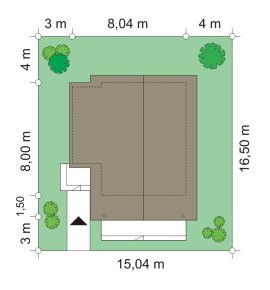 - Min. wymiary działki 15.04x15.04 m