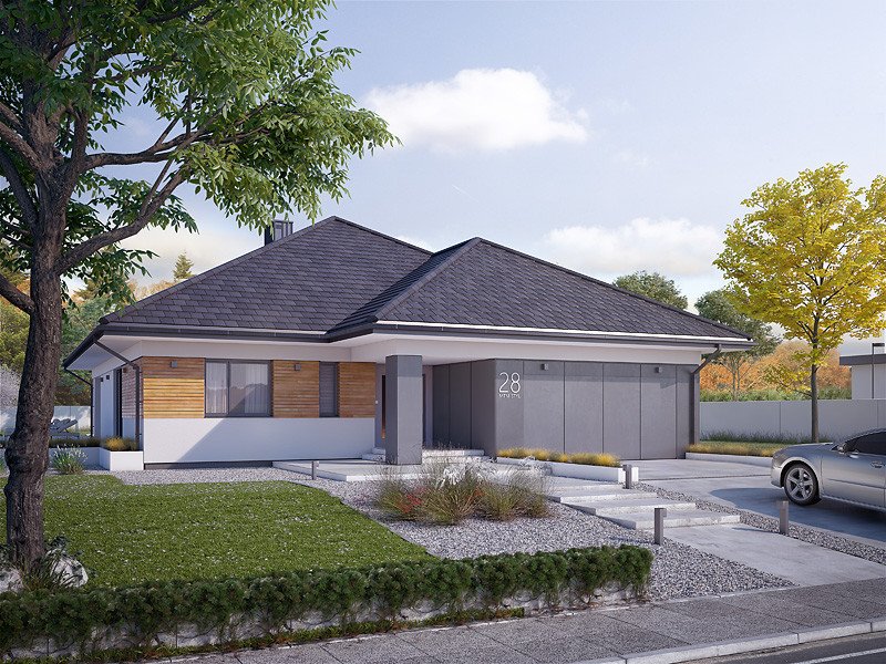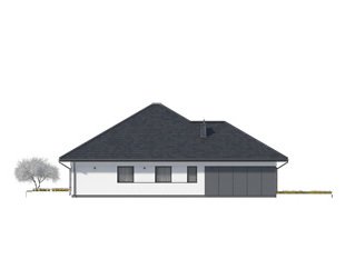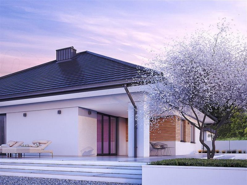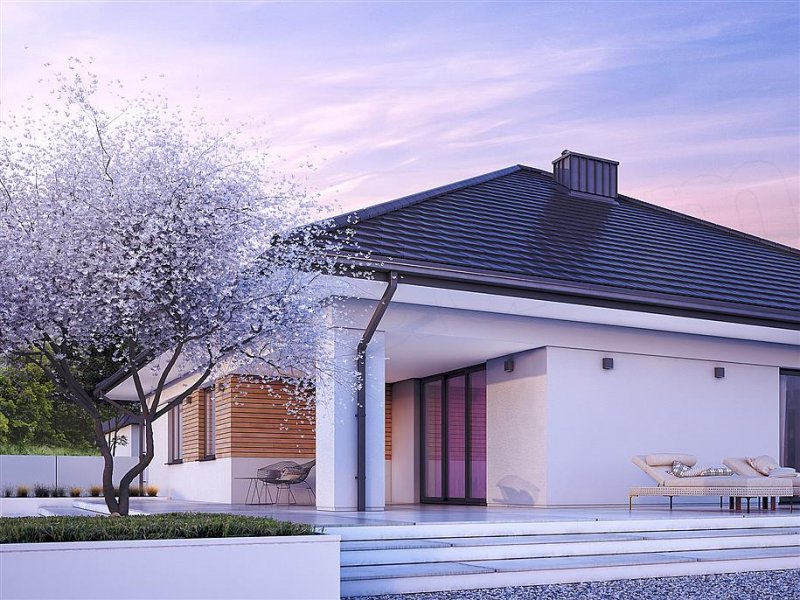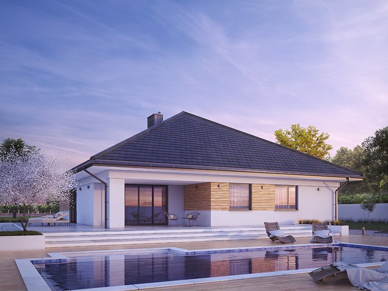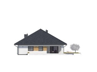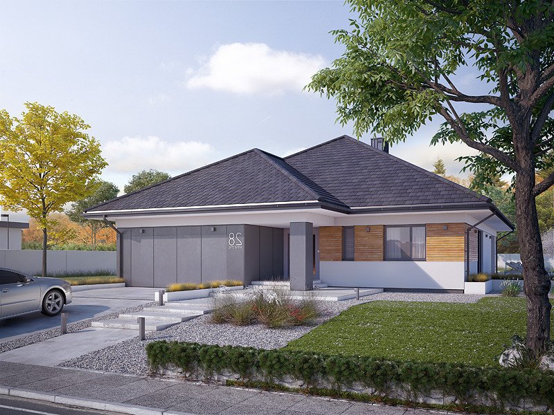 Decyma 9 to projekt domu parterowego energooszczędnego, zaprojektowanego z myślą o 4-5 osobowej rodzinie. Wnętrze domu jest niezwykle funkcjonalne i podzielone na strefę dzienną oraz nocną. W strefie dziennej znajduje się przestrojony salon z jadalnią i dużą ilością przeszkleń, kuchnia ze spiżarnią oraz reprezentacyjny hol. W części nocnej znajdują się cztery sypialnie, łazienka oraz pralnia. Dodatkowym atutem projektu jest garaż na dwa stanowiska oraz zadaszony taras w części ogrodowej.