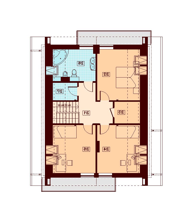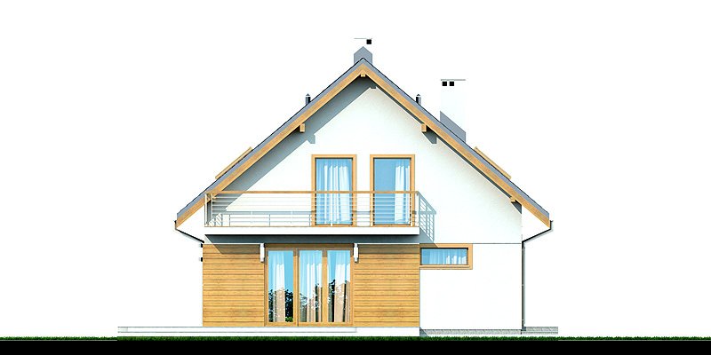 Diona BIS to bardzo ładny i funkcjonalny dom o prostej i taniej, dokładnie przemyślanej konstrukcji, przeznaczony dla 3-6 osobowej rodziny, o eleganckiej formie i współczesnej estetyce. Jest to budynek parterowy z użytkowym poddaszem, niepodpiwniczony, z garażem jednostanowiskowym. Na parterze zlokalizowana jest obszerna strefa dzienna składająca się z kuchni (która w zależności od potrzeb może być zamykana lub otwarta) słonecznej jadalni oraz salonu otwartego na taras i ogród. Dzięki doświetleniu strefy dziennej zarówno od strony ogrodu jak i z boku dom nadaje się na każdą działkę, zarówno z wjazdem od północy jak i od południa, wschodu bądź zachodu. Dodatkowo na parterze zaprojektowano łazienkę oraz pomieszczenie gospodarcze (kotłownię) dostępną z holu z wyjściem na ogród dzięki czemu może ona stanowić też miejsce składowania narzędzi ogrodowych. W wiatrołapie przewidziano miejsce na dużą szafę wnękową. Garaż ma wygodne wejście bezpośrednio do wiatrołapu. Na poddaszu znalazły się trzy pokoje oraz obszerna łazienka, pralnia/suszarnia i garderoba. Architektura domu to połączenie tradycji z nowoczesnością oraz elegancji z dbałością o proporcje i estetykę. Dom zaprojektowano jako energooszczędny. Dostępna również wersja projektu bez garażu, w miejsce którego zaprojektowano pokój/gabinet (projekt Diona).