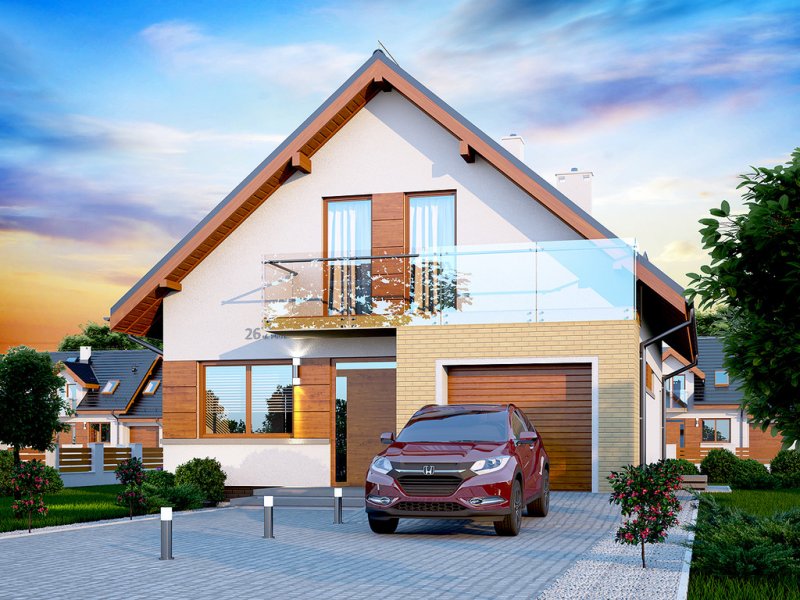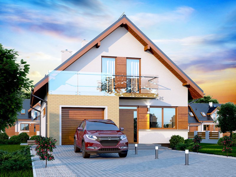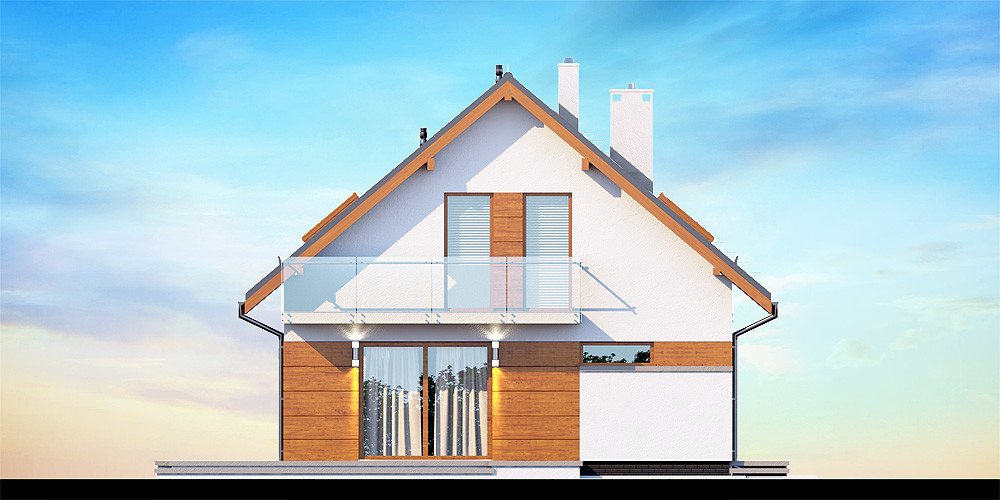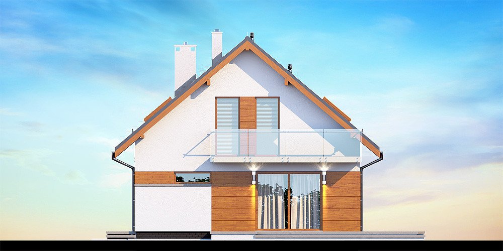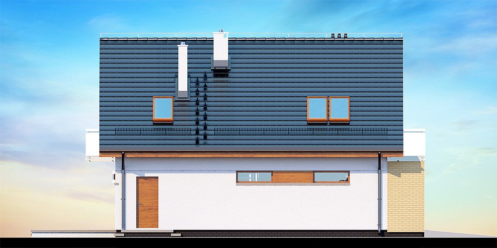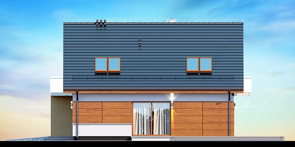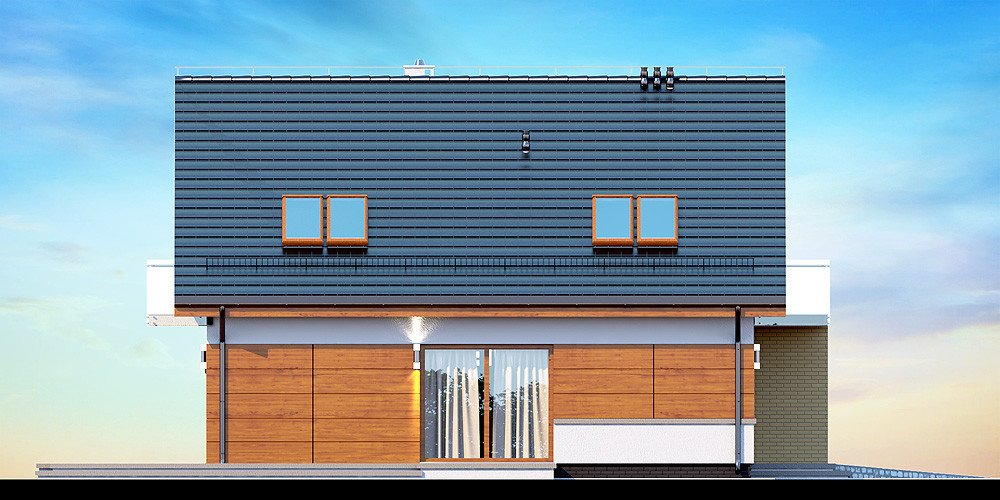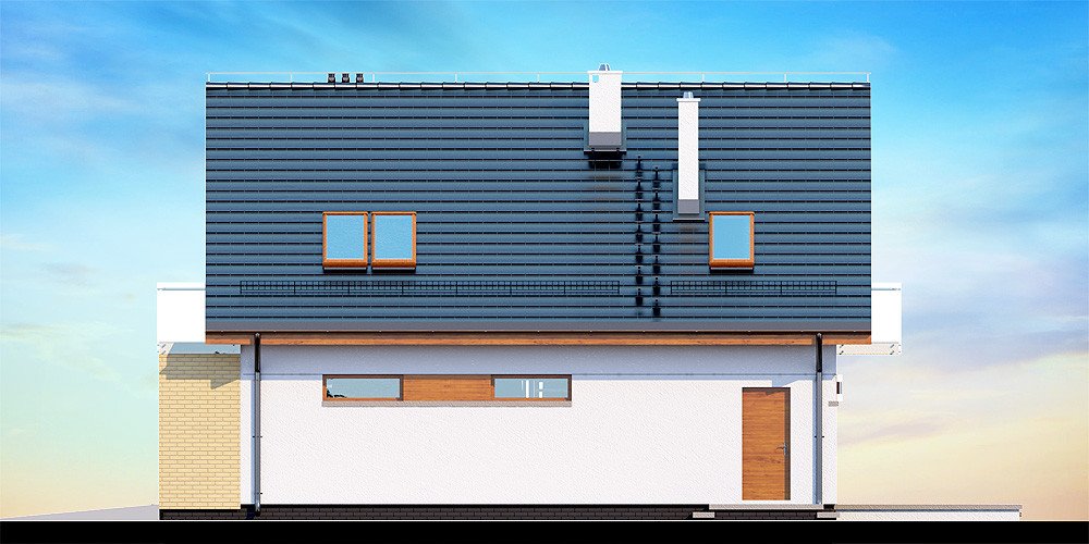 Działki o kształcie wydłużonego prostokąta uchodzą za nieco trudniejsze do optymalnego zagospodarowania. Projektanci wychodzą jednak naprzeciw zapotrzebowaniu Inwestorów i przygotowują projekty specjalnie zaplanowane z myślą o tzw. wąskich działkach. Projekt Diona Mała Bis przedstawia dom, który można zbudować na takiej właśnie nieruchomości. W tym przypadku wystarczająca szerokość działki wynosi 17,04 m. Budynek wyróżnia się bardzo prostą i zwartą bryłą, w którą wkomponowano jednostanowiskowy garaż. Tę przemyślaną konstrukcję wykończono zgodnie z najnowszymi trendami, nadając budynkowi reprezentacyjny wygląd, który z biegiem czasu nie straci na atrakcyjności. Dom zaprojektowano przy tym jako energooszczędny. W takim budynku nie mogło zabraknąć dużych przeszkleń, które zostały rozmieszczone w taki sposób, aby strefa dzienna była dobrze oświetlona niezależnie od tego, w którą stronę zostanie skierowana.