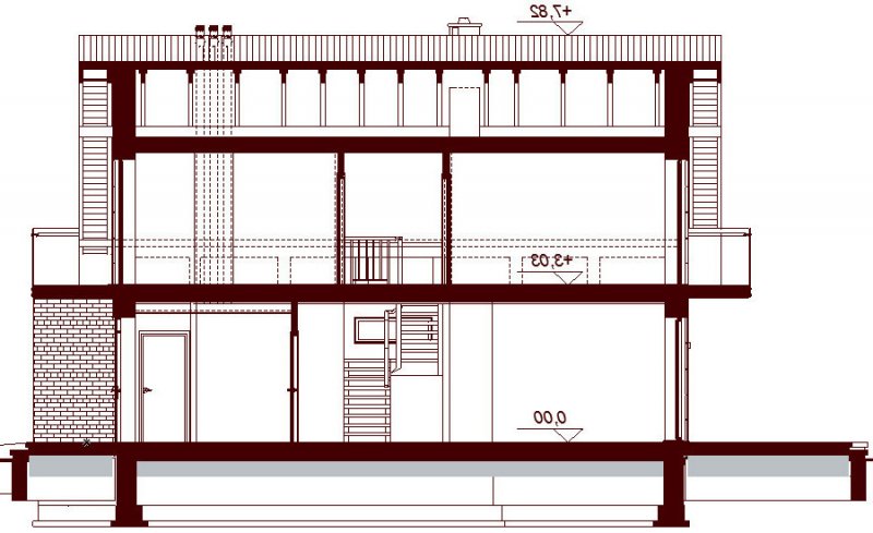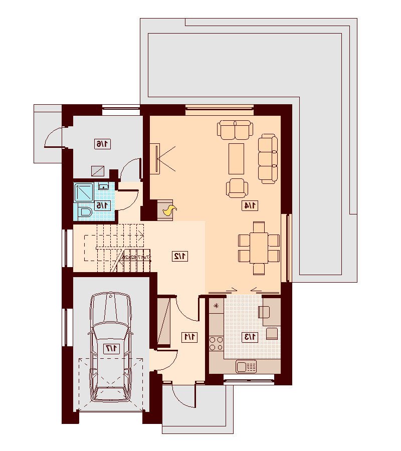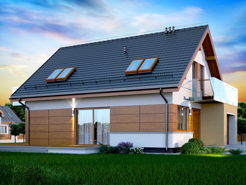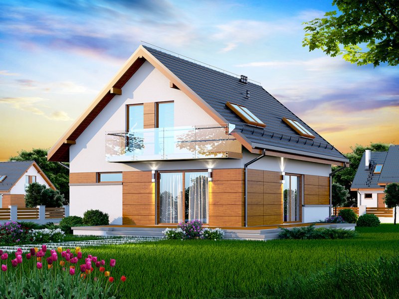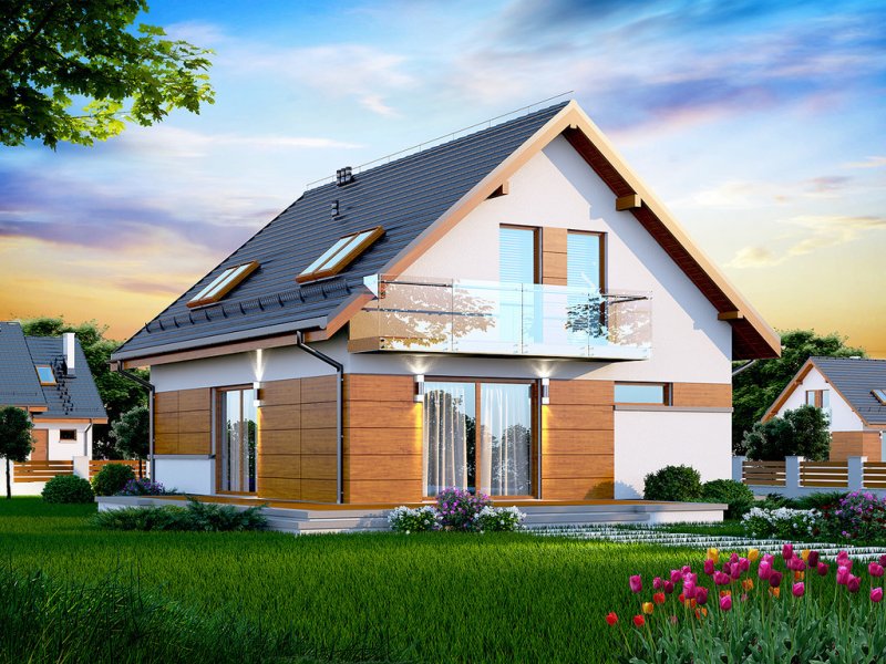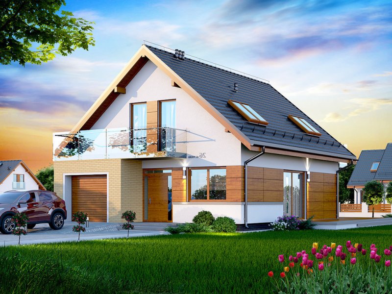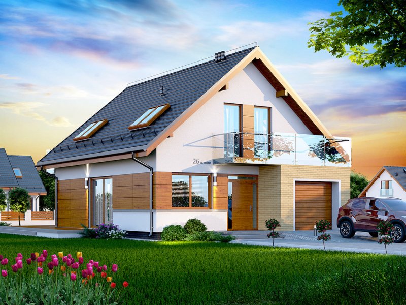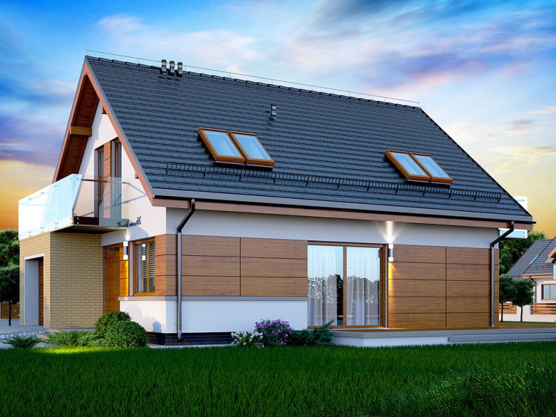 Działki o kształcie wydłużonego prostokąta uchodzą za nieco trudniejsze do optymalnego zagospodarowania. Projektanci wychodzą jednak naprzeciw zapotrzebowaniu Inwestorów i przygotowują projekty specjalnie zaplanowane z myślą o tzw. wąskich działkach. Projekt Diona Mała Bis przedstawia dom, który można zbudować na takiej właśnie nieruchomości. W tym przypadku wystarczająca szerokość działki wynosi 17,04 m. Budynek wyróżnia się bardzo prostą i zwartą bryłą, w którą wkomponowano jednostanowiskowy garaż. Tę przemyślaną konstrukcję wykończono zgodnie z najnowszymi trendami, nadając budynkowi reprezentacyjny wygląd, który z biegiem czasu nie straci na atrakcyjności. Dom zaprojektowano przy tym jako energooszczędny. W takim budynku nie mogło zabraknąć dużych przeszkleń, które zostały rozmieszczone w taki sposób, aby strefa dzienna była dobrze oświetlona niezależnie od tego, w którą stronę zostanie skierowana.