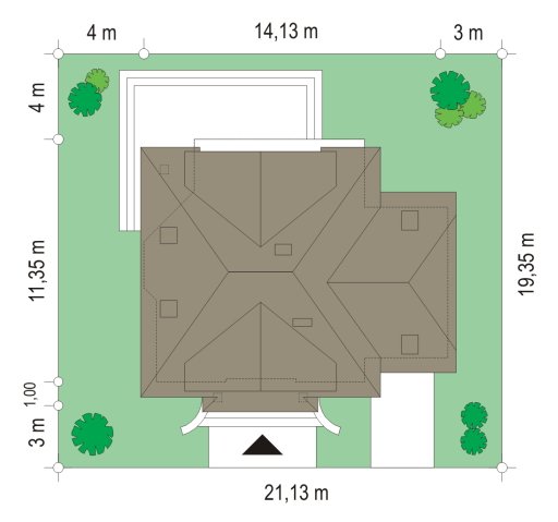 - Min. wymiary działki 21.13x19.35 m