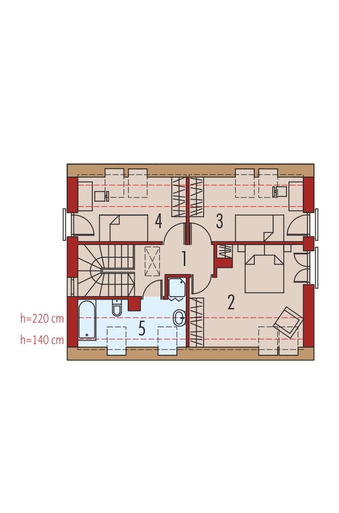 Strefa nocna – poddasze: komfortowa sypialnia główna, dwie mniejsze sypialnie oraz łazienka