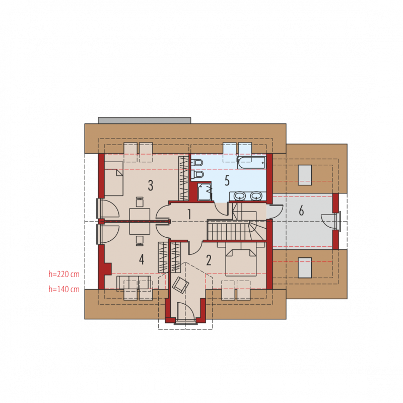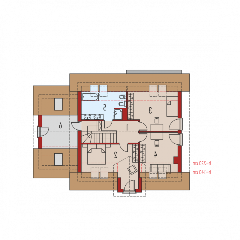 - Wygodna strefa nocna zaplanowana na poddaszu