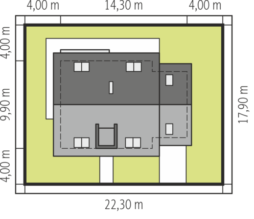 - Bryła sprzyja wykonaniu energooszczędnych rozwiązań instalacyjnych: pompy ciepła, wentylacji mechanicznej z odzyskiem ciepła, systemu solarnego i fotowoltaicznego