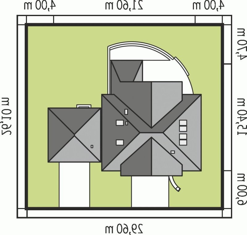 - Min. wymiary działki 29.60x21.70 m