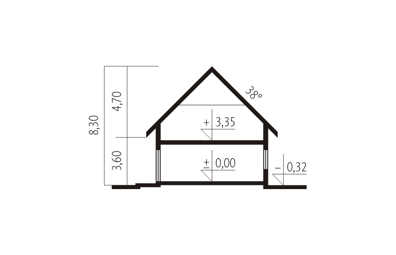- Kąt nachylenia dachu 38.00°