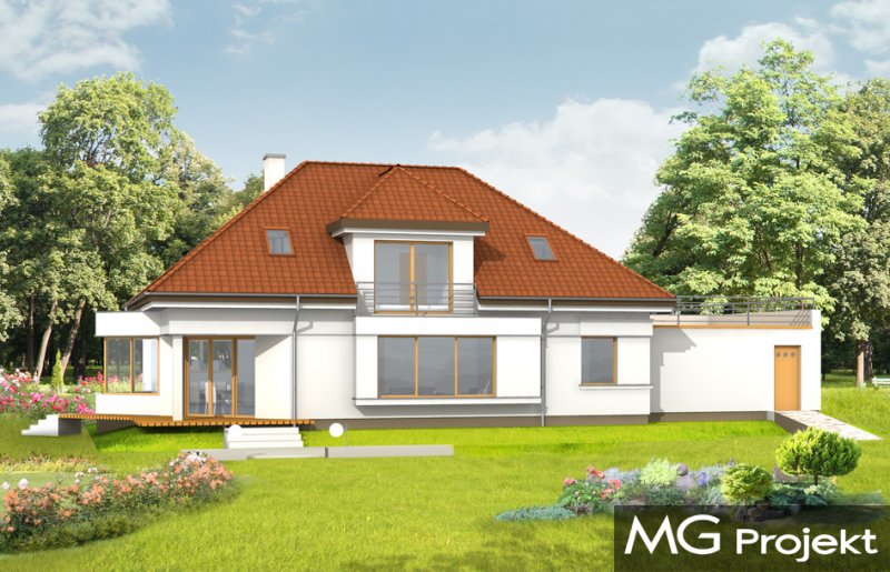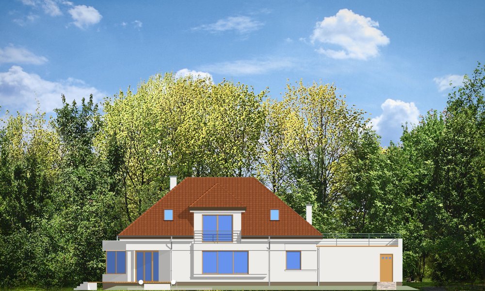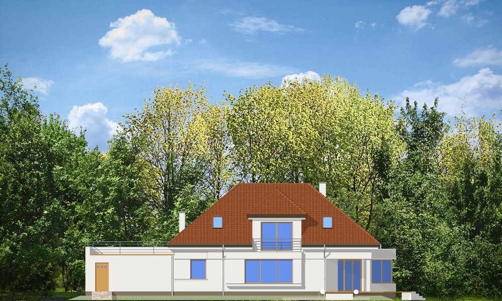 Eko to dom przewidziany dla rodziny 4-5 osobowej. Odnajdą się w nim ludzie oczekujący od swojego domu oryginalności, jednocześnie z zachowaniem dobrego smaku. Projekt wykorzystuje język nowoczesnych detali takich jak duże przeszklenia, otwarcia przestrzenne, prostopadłościenne wykusze, czy taras na dachu garażu. Dom zaprojektowano z myślą o maksymalnym otwarciu na ogród. Dodatkową atrakcją jest taras nad garażem na poddaszu.