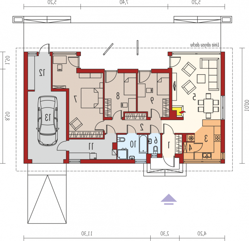 - Kąt nachylenia dachu 26.00°