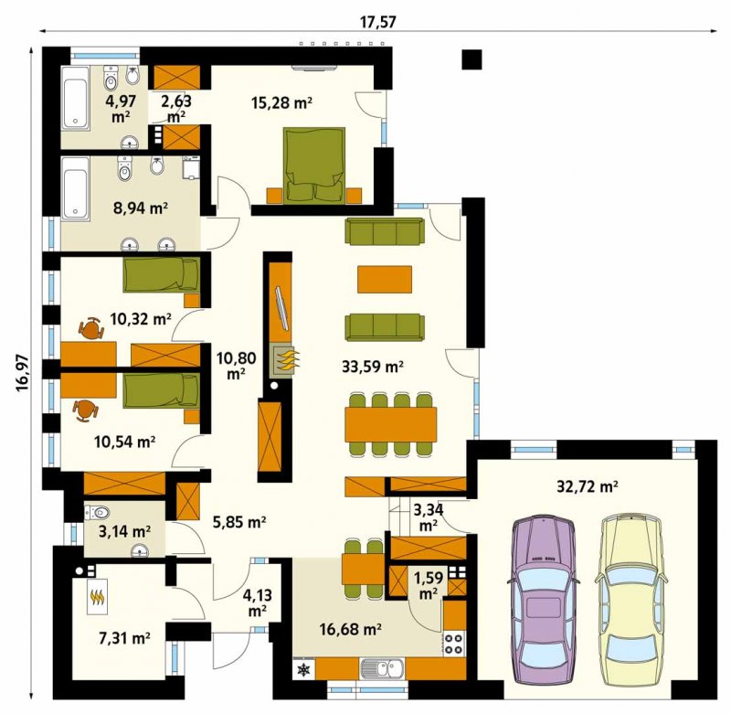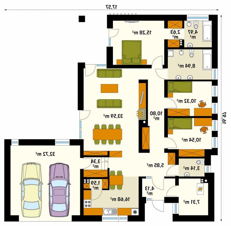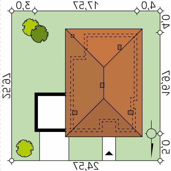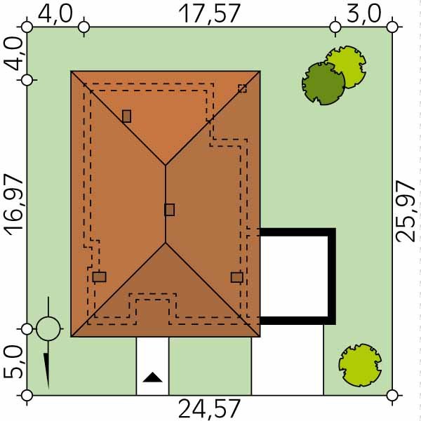 - Min. wymiary działki 24.57x25.97 m