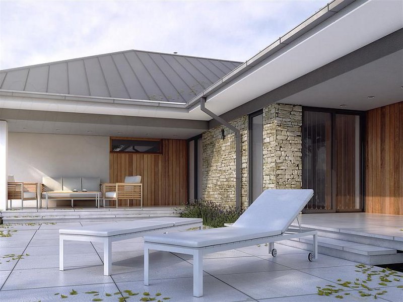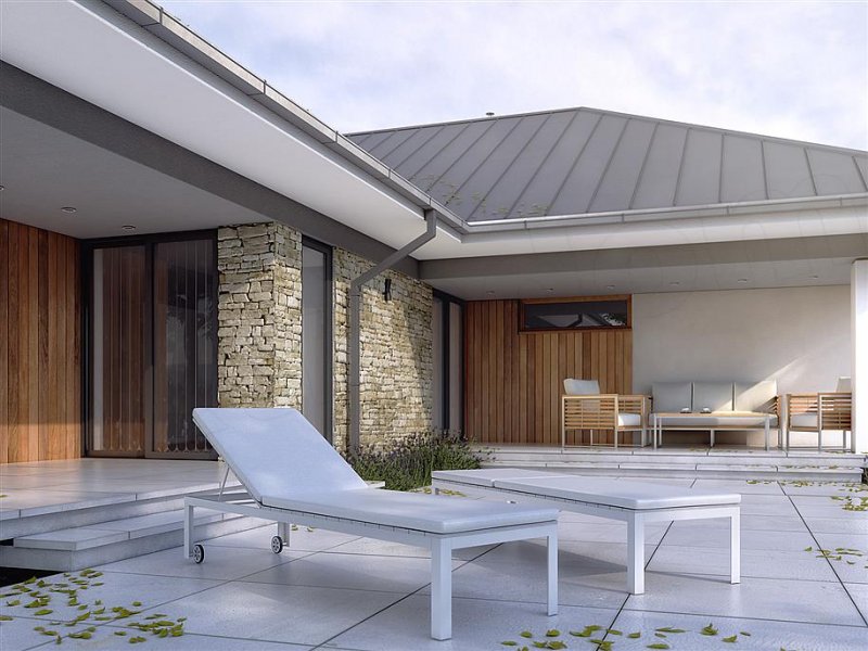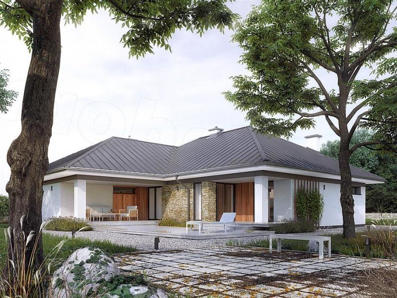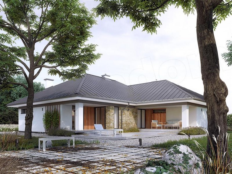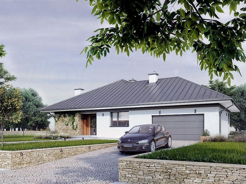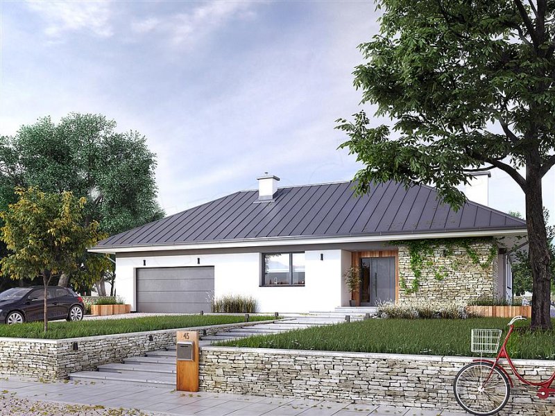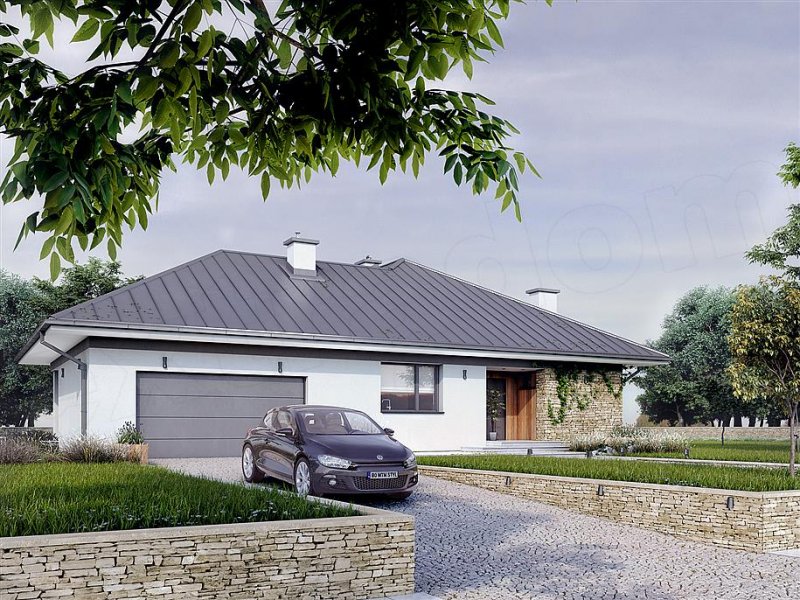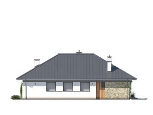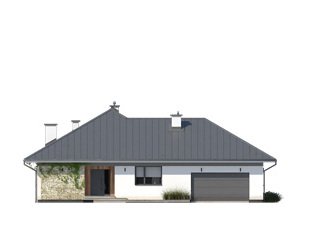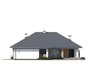 Drugi projekt z rodziny Feniks został dopasowany do lokalizacji, w których warunki zabudowy pozwalają na dach o kącie nachylenia 30°. Otwarty układ funkcjonalny zapewnia komfortowe warunki dla 4-osobowej rodziny, przy czym zachowano czytelny podział na strefy - dzienną i prywatną. Główna sypialnia została rozszerzona o garderobę i prywatną łazienkę. Zadaszone tarasy umożliwiają planowanie wypoczynku na świeżym powietrzu niezależnie od warunków atmosferycznych. Duża kotłownia umożliwia zaprojektowanie dowolnego systemu ogrzewania, a w razie potrzeby może służyć również jako dodatkowa przestrzeń gospodarczo-magazynowa. Uzupełnieniem programu funkcjonalnego jest 2-stanowiskowy garaż.
