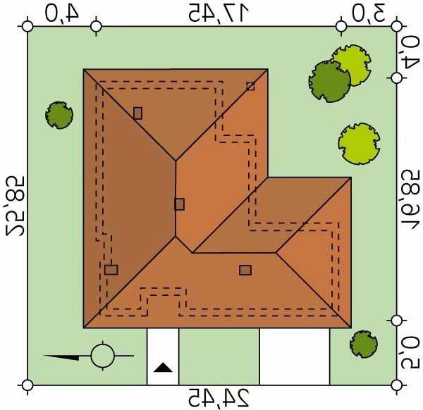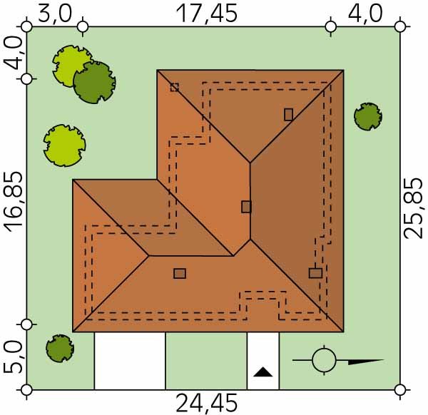 - Min. wymiary działki 24.45x25.85 m