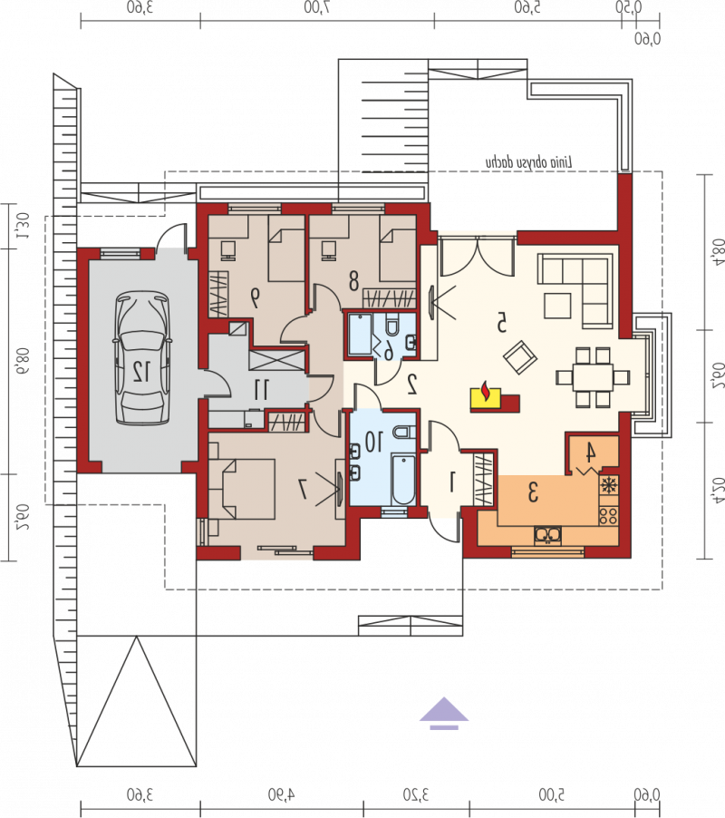 - Kąt nachylenia dachu 25.00°