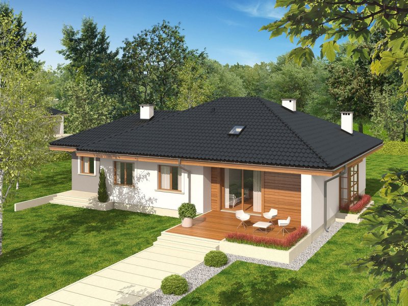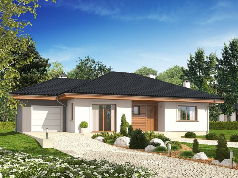 Franczi III G1 ECONOMIC (wersja A) to dom, który wyróżnia się przytulnym wdziękiem i klasyczną elegancją. Optymalna ilość perfekcyjnie rozplanowanych przeszkleń sprawia, że do wnętrza swobodnie przenika naturalne światło, które doskonale doświetla pomieszczenia wypełniając je blaskiem i przytulną atmosferą. Prosta konstrukcja w połączeniu ze sprawdzonym zestawem rozwiązań zapewnia domownikom codzienny komfort użytkowy.