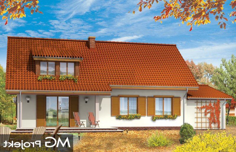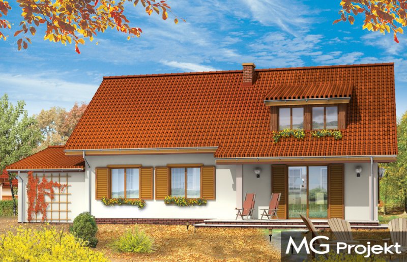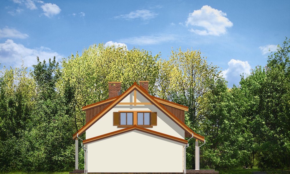 Fraszka 2 to budynek jednorodzinny dla 4-7 osobowej rodziny, z możliwością rozwoju i zmiennymi potrzebami lokalowymi. Dzięki dodatkowym pomieszczeniom na poddaszu i bliskości schodów od wejścia dom można z powodzeniem podzielić nawet na dwa niezależne mieszkania. Prostota konstrukcji domu, łatwy do wykonania dach to niepodważalne zalety projektu. Na parterze prócz salonu połączonego z kuchnią i holem zaprojektowano trzy sypialnie. Na poddaszu mieszczą się dodatkowo trzy ładne pokoje. Dom może zamieszkiwać duża rodzina, lub dwie rodziny. Można też mieszkając na parterze wykorzystać poddasze jako jednoprzestrzenne studio o dowolnej funkcji - rekreacyjnej czy np. związanej z pracą. Do części mieszkalnej domu został dodany garaż z pomieszczeniem gospodarczym. Projekt dostępny jest także w wersji odbicia lustrzanego.